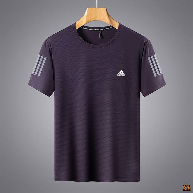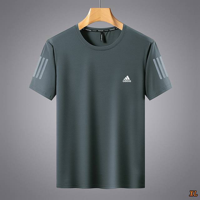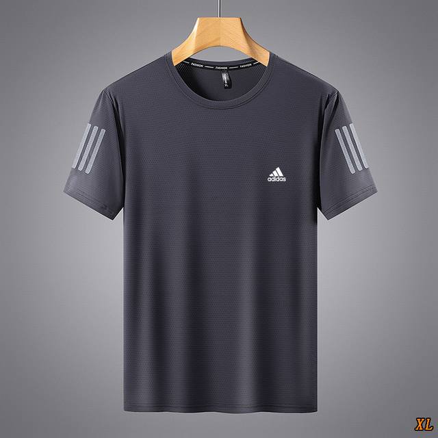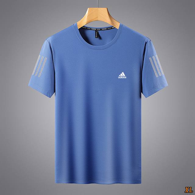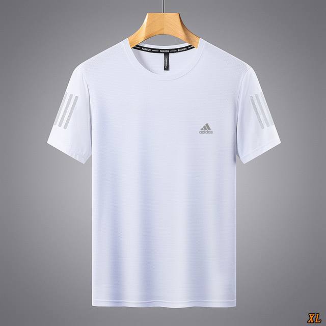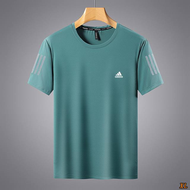 Adidas exclusive real shot of the new summer high-quality breathable ice silk T-shirt quick-drying short-sleeved round neck loose high-elastic quick-drying clothes three-bar T-shirt quick-drying short-sleeved, this season's main product, sufficient supply, rest assured to promote, high-end quality, classic design, excellent workmanship, classic and versatile, the upper body effect is excellent