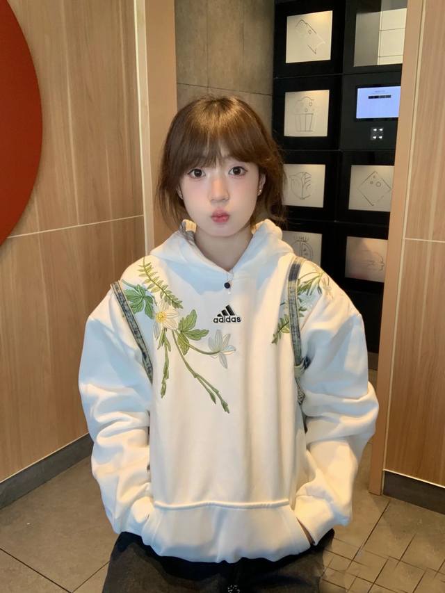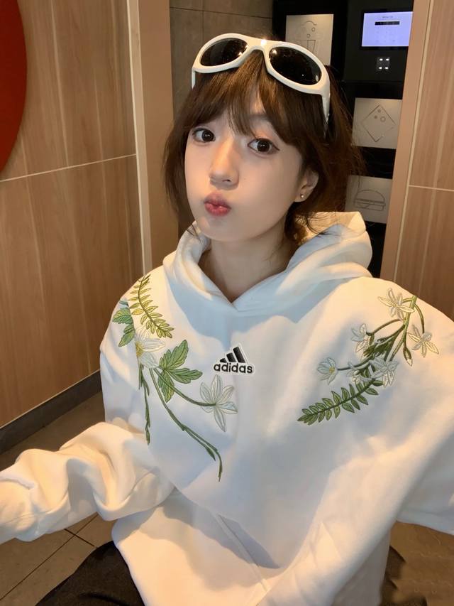Adidas heavyweight pure cotton hooded sweatshirt for men, thickened couple style embroidered national trend new Chinese style jacket top for women
