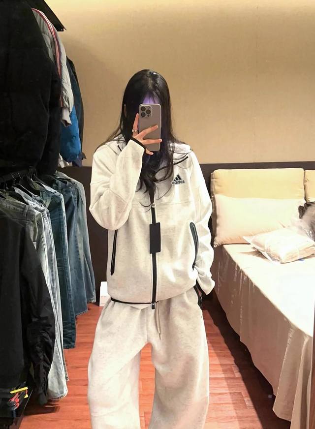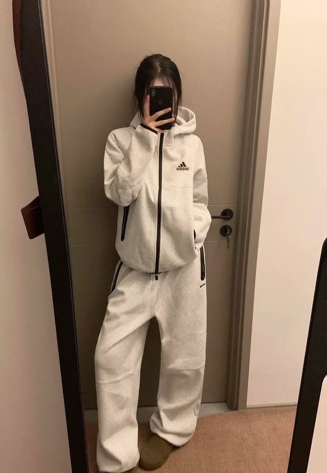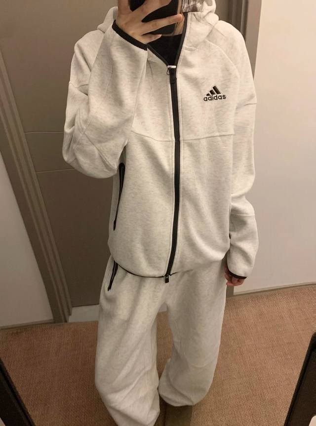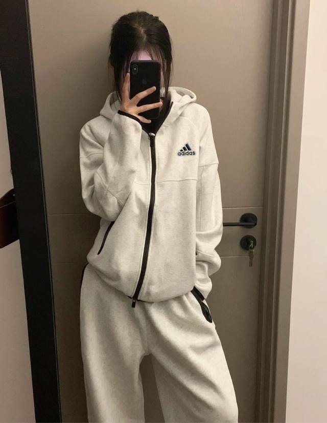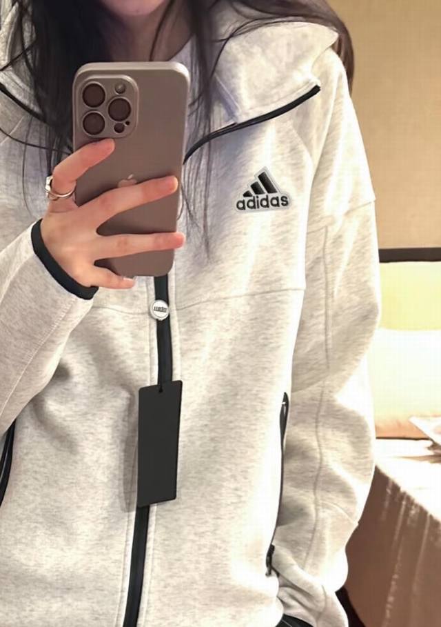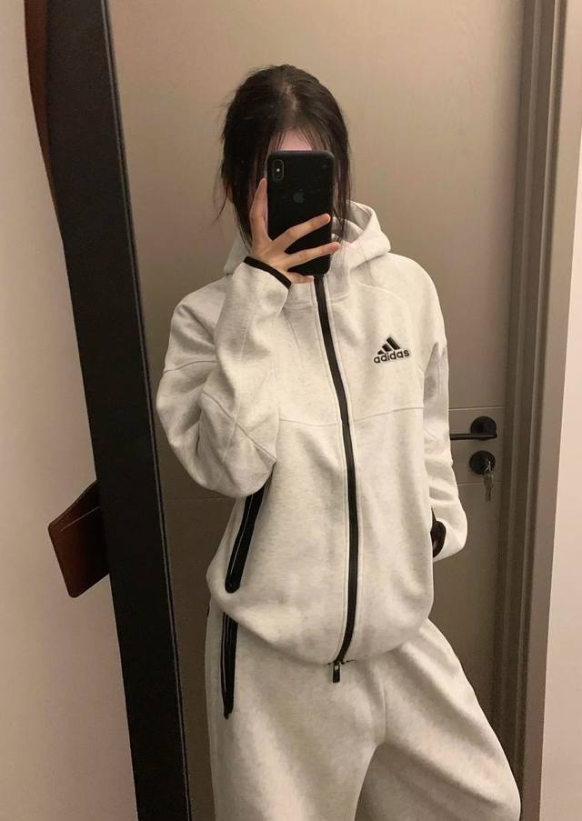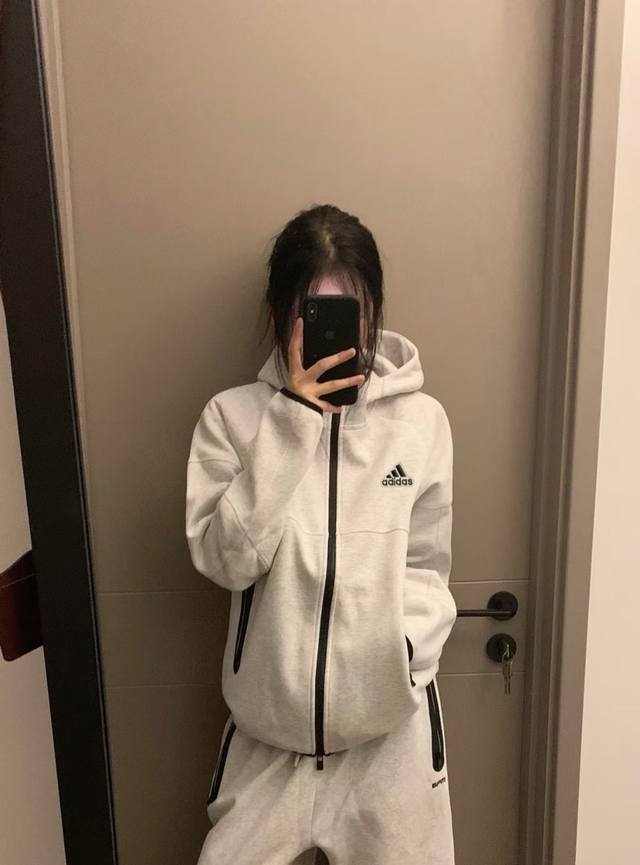 Adidas new early autumn cardigan hooded sweatshirt for women autumn and winter thickened casual sports style gray zipper loose unisex couple jacket