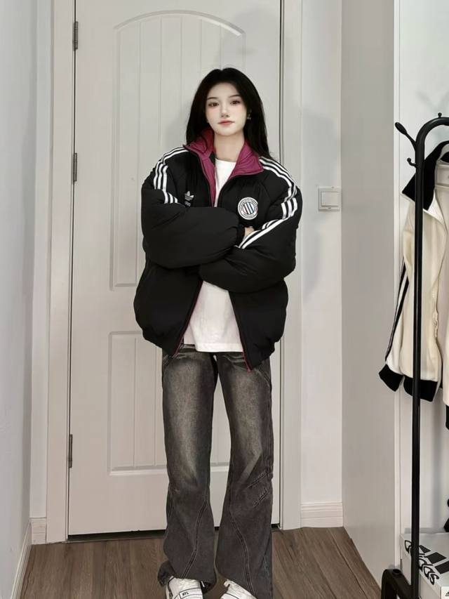 Adidas Originals Adcrev Pad Tt Retro Warm Reversible Striped Logo Loose Long-Sleeved Cotton Jacket. Original replica, top quality, complete accessories. Song Yuqi's style, reviewed by numerous Xiaohongshu and Dewu fashion bloggers. A classic Adidas creation, the Adcrev Pad Tt cotton jacket's unique reversible design is truly exceptional. One side is a simple solid color, showcasing understated elegance; the other side features striking stripes and the classic logo, instantly boosting its appeal. Maximum loft, warmth comparable to down jackets, easily switch between two styles to meet your needs for different occasions and moods. Original purchase! Disassembled and repainted from the original! Made with Longve Saison nylon fabric, characterized by its lightweight and waterproof properties! Completely custom-made from the original