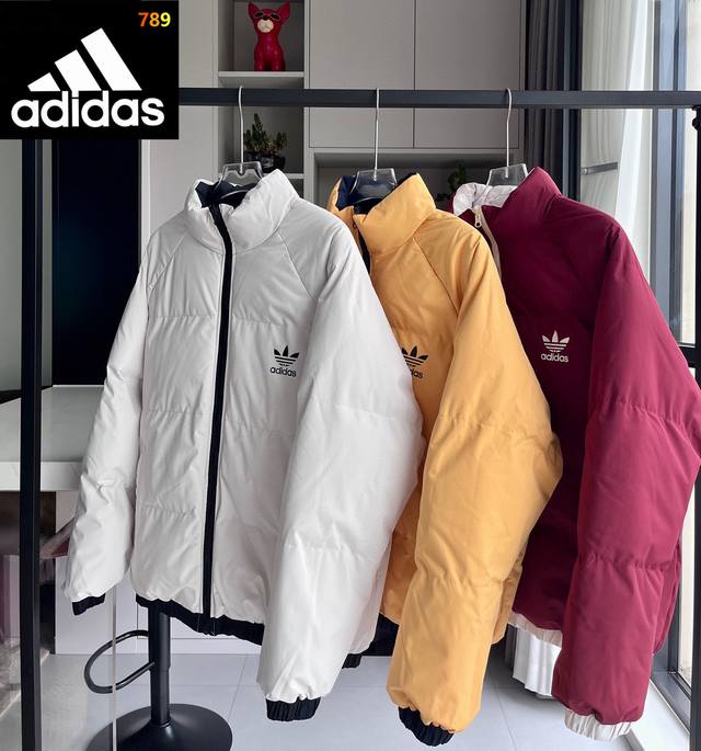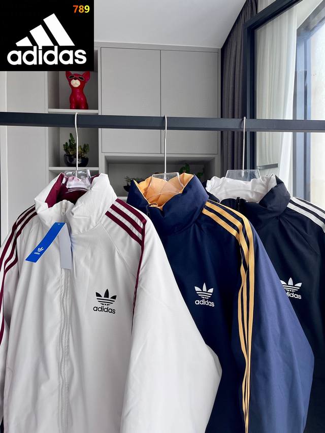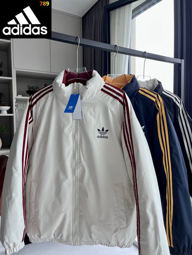 Adidas Originals Color Block Reversible Cotton Jacket Ddd Adidas Originals Color Block Reversible Stand Collar Cotton Jacket, a warm and comfortable garment, perfect for lazy people, reversible and stylish on both sides, thick and warm, easily copes with sub-zero temperatures, made from selected healthy cotton, with strict quality control, comfortable, soft and warm, will not deform after repeated washing, does not easily clump, a must-have cotton jacket for winter, looks good with anything, super super super super comfortable, warm without being bulky, perfect for everyday wear, oversized fit, unisex! Ddd Colors: White, Black, Navy DDD