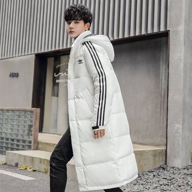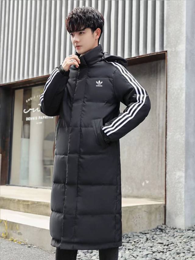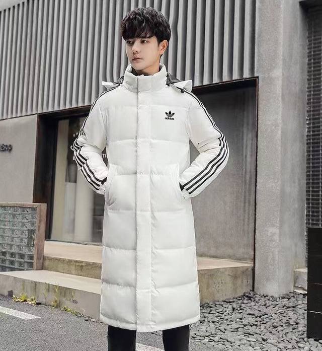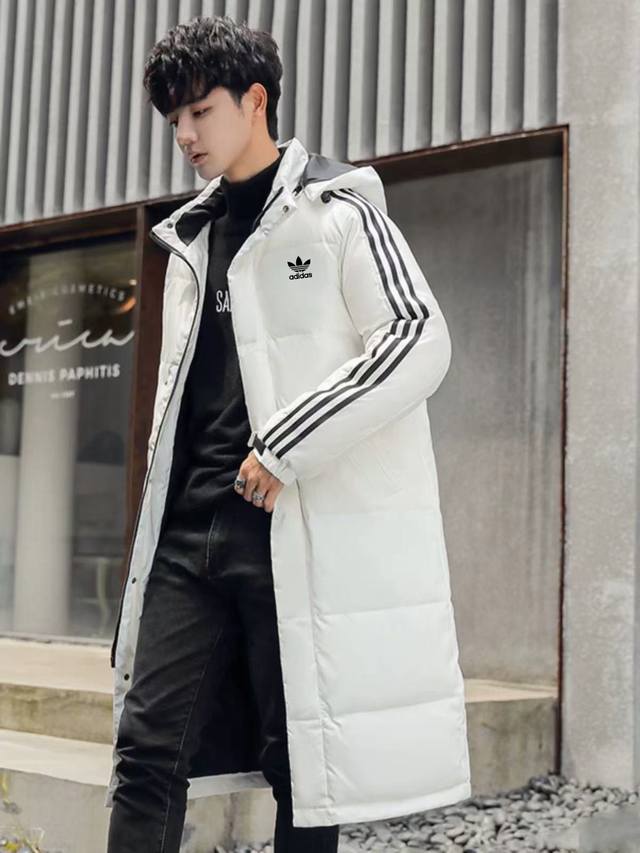 Adidas Originals Long Over-the-Knee Thick Coat, Unisex Sports Coat, White Hooded Couple Down Jacket. This is the highest quality version on the market, made with a three-in-one fabric that is windproof, doesn't attract lint, and doesn't attract stains. It features a double-layered lining to prevent down leakage. The loft is excellent, making it a lightweight yet thick down jacket. It's extremely warm and has superb windproof properties. You can get through winter without wearing anything underneath. It can withstand temperatures as low as -40 degrees Celsius. High quality with attention to detail: a detachable hood for windproof warmth, large internal pockets for carrying personal items, Velcro cuffs for windproof warmth, and a double zipper and button closure for double wind and cold protection. The entire garment is full of thoughtful details. This down jacket is of excellent quality and workmanship, with a loose fit, unisex design, and quality comparable to those costing over a thousand yuan in department stores. It's recommended that everyone have one in their wardrobe! DDD Colors: Black, White DDD Sizes: M-3XL See size chart in picture nine DDD