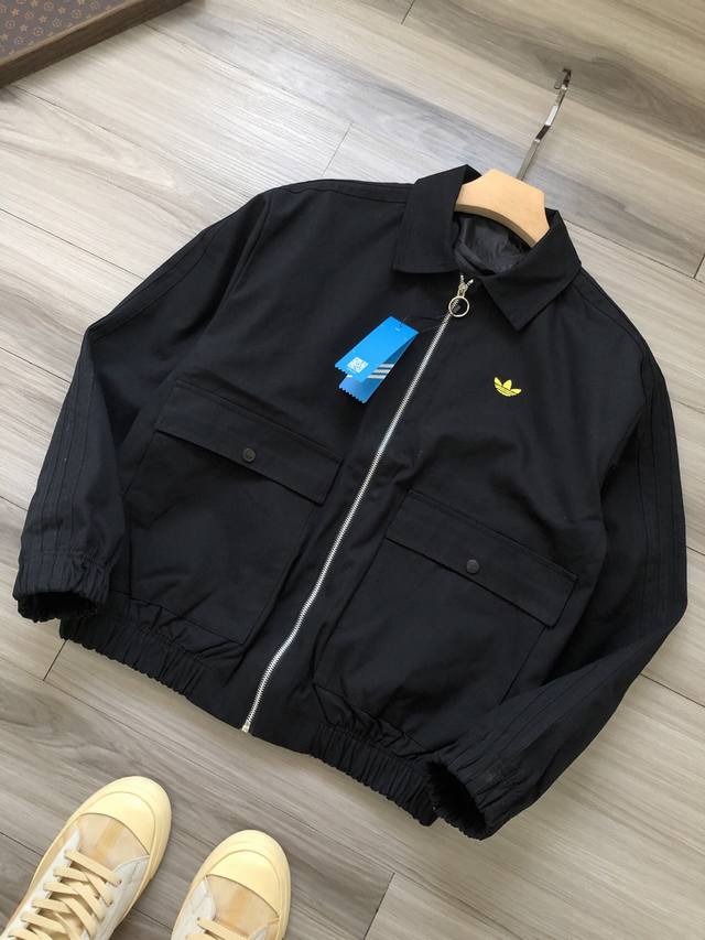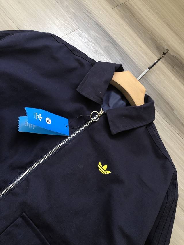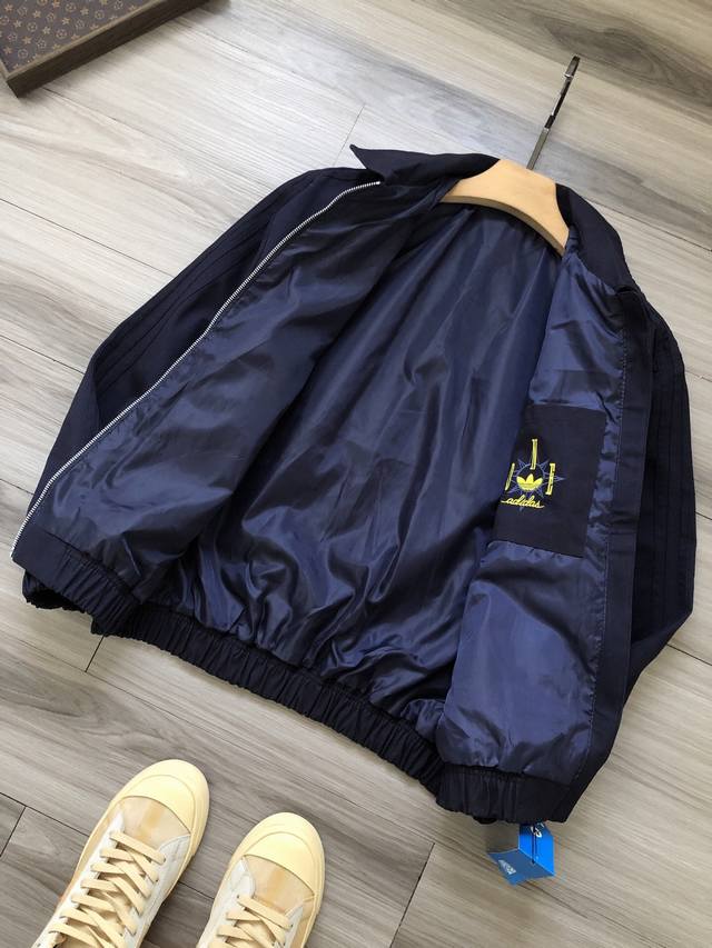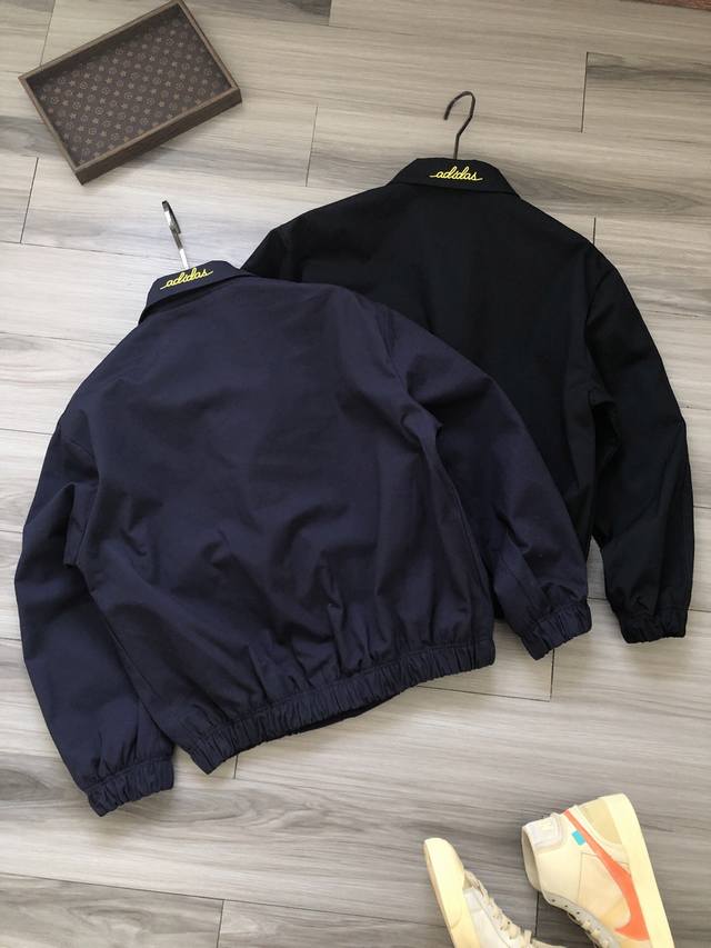 Adidas Originals Trefoil 25 Early Spring Edition Solid Color Lapel Zipper Jacket with Three-Stripe Logo and Cursive Embroidery for Men and Women.