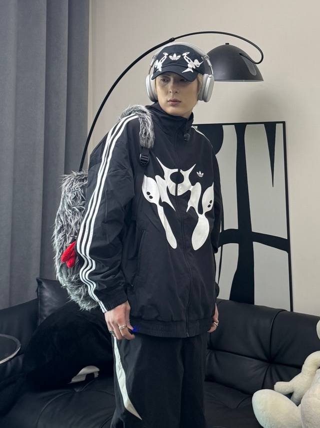 Adidas Originals/Offgod Fbird Collaboration Fashion Print Sportswear Jacket, Celebrity Style,