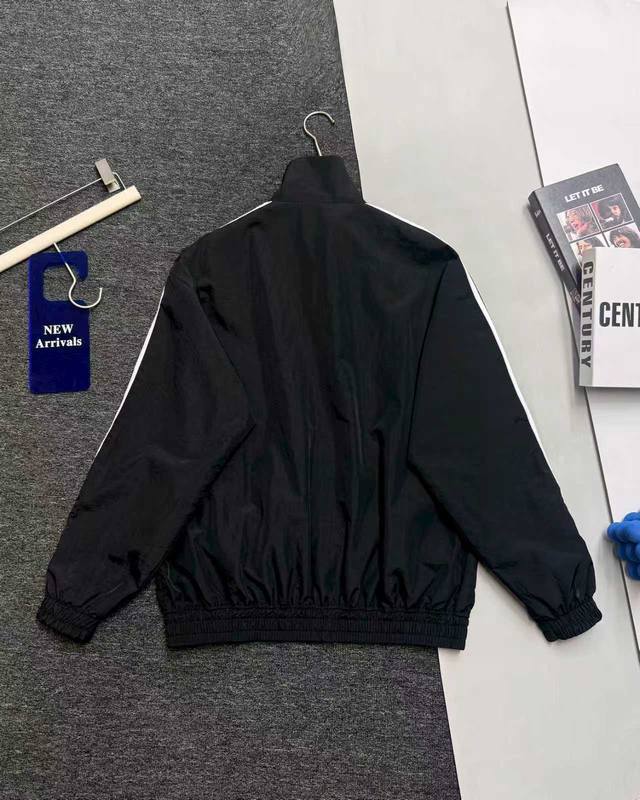 No.: Ka2283. Original replica, top quality, compare freely! Available in Taobao and physical stores!! Fully customized accessories, custom woven fabric, original mold printing, soft and comfortable fabric without being bulky. The original cut and design of the entire garment is very unique. The stand-up collar jacket style is super cool. The classic embroidered logo on the chest complements the solid color, simple yet sophisticated. There are pockets on both sides of the hem, a custom zipper with the trefoil logo, and raglan sleeves for a retro feel. Unisex style, versatile and easy to match! Color: Black Sizes: S-XL Length: 68/70/72/74 Chest: 124/128/132 Shoulder Width: 54/55/56/57 Sleeve Length: 60/61/62/63