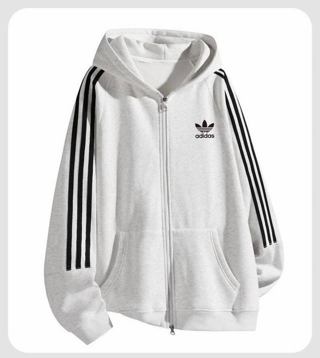 Adidas Trefoil casual contrast color three-bar hooded zipper sweatshirt jacket, a true series that you never get tired of wearing, the OS version looks great on the upper body, all three color combinations are super good-looking, and all three colors are also very easy to match. It's such a treasure, the hooded design is so thoughtful, and the bottom body can be matched with anything, it's absolutely perfect, the same style for men and women, couples style