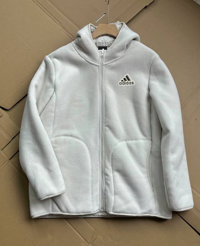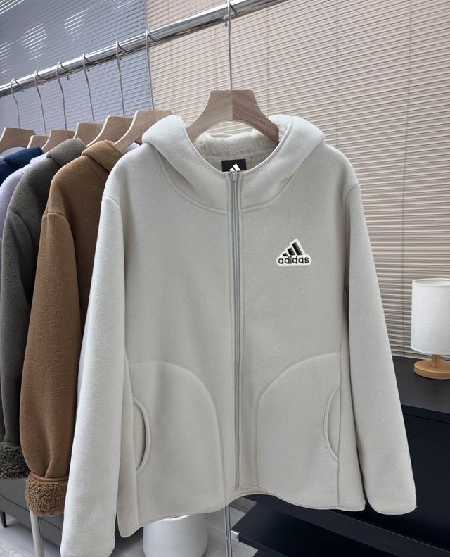 Adidas Unisex Couple Autumn/Winter 520g Thickened Faux Lambswool Warm Jacket Fashionable Versatile Hooded Top Jacket Thickened Lambswool Cotton Coat DDD Wear it alone when it's hot, and layer it over a down jacket or vest when it's cold