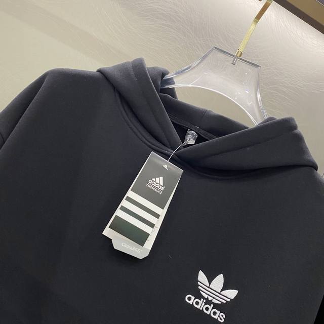 / Adidas Winter New Style Trefoil Letter Embroidered Fleece Hooded Sweatshirt Colo