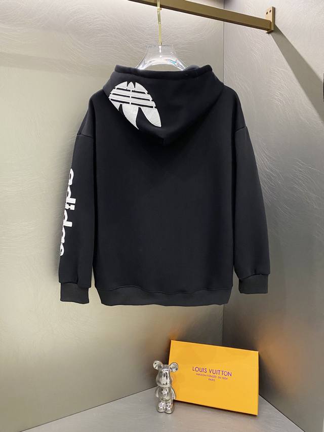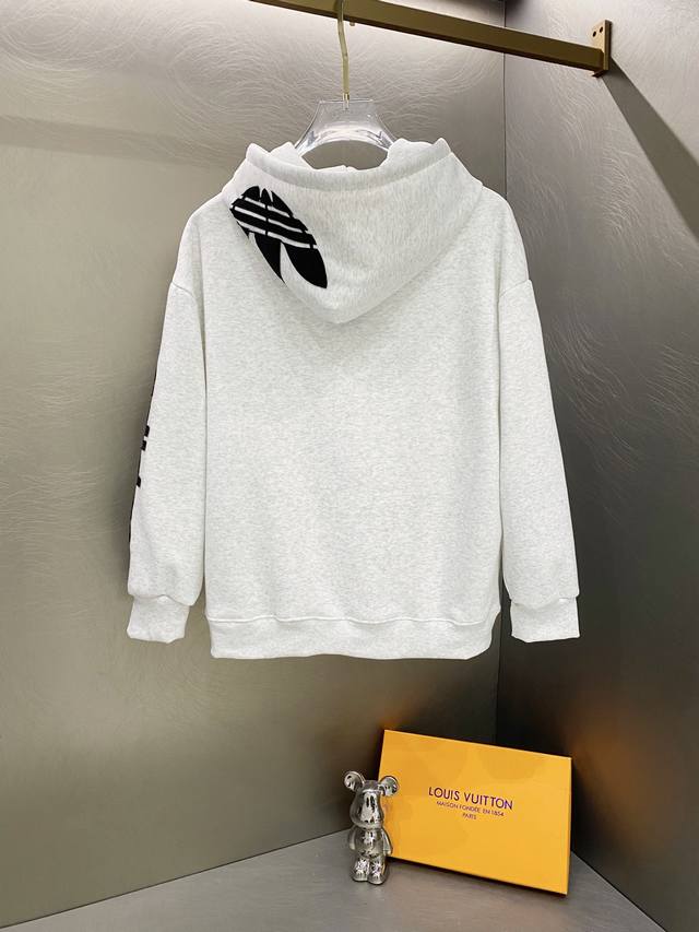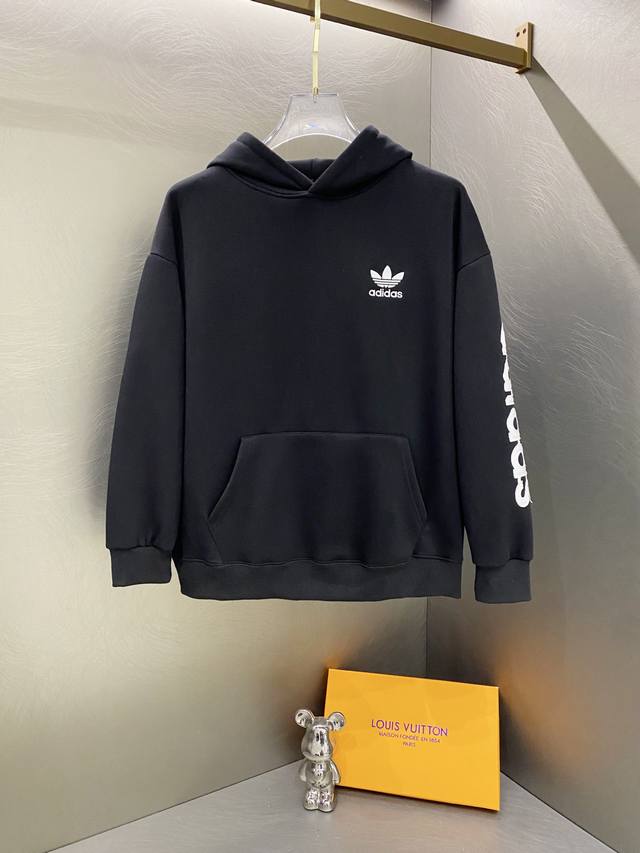 Adidas Winter New Style Trefoil Letter Embroidered Fleece Hooded Sweatshirt DDD Colors: Gray, Black Ddd Sizes: M, L, XL, XXL, XXXL DDD