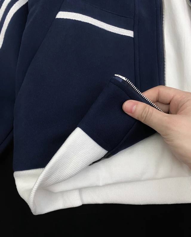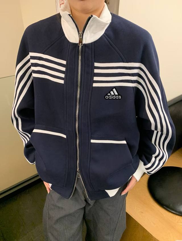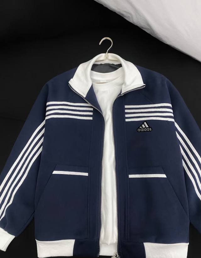 Adidas's heavy-color block-print hood with three stripes on the chest. This Ame