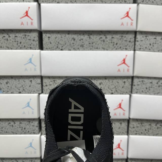 Real shot details Adidas Originals X Offgod collaboration faux leather stand-up