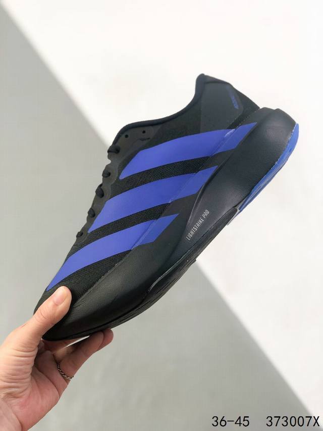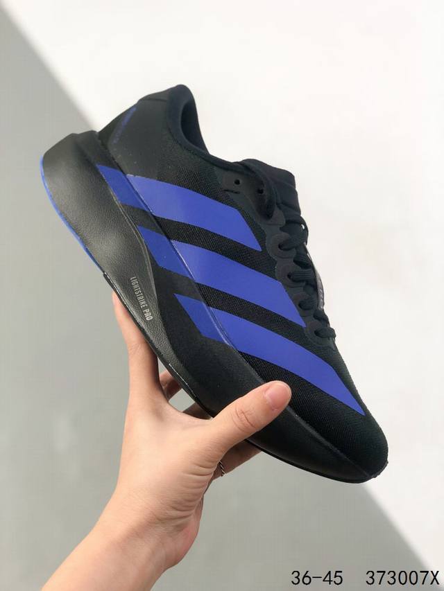Adidas Adizero Evo SL low-top running shoes, comfortable, non-slip, and durable. Adidas' innovative, record-breaking lightweight running shoe, the Adizero Adios pro Evo, features an ultra-lightweight upper design that delivers near-barefoot comfort. The midsole utilizes cutting-edge Lightstrike pro material, meticulously tuned to achieve the perfect combination of superior cushioning and lightweight performance.