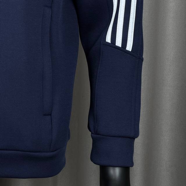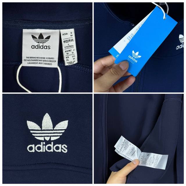 - The fabric is made of customized original spring heavy-weight air cotton. The lettering on the chest is embroidered with thousands of stitches, clear, full and without rough edges. There is a zipper on the pocket. The sleeves have the classic Adidas three stripes, extending from the collar to the cuff. The classic small logo on the chest matches the solid color overall, classic and versatile, suitable for both men and women!