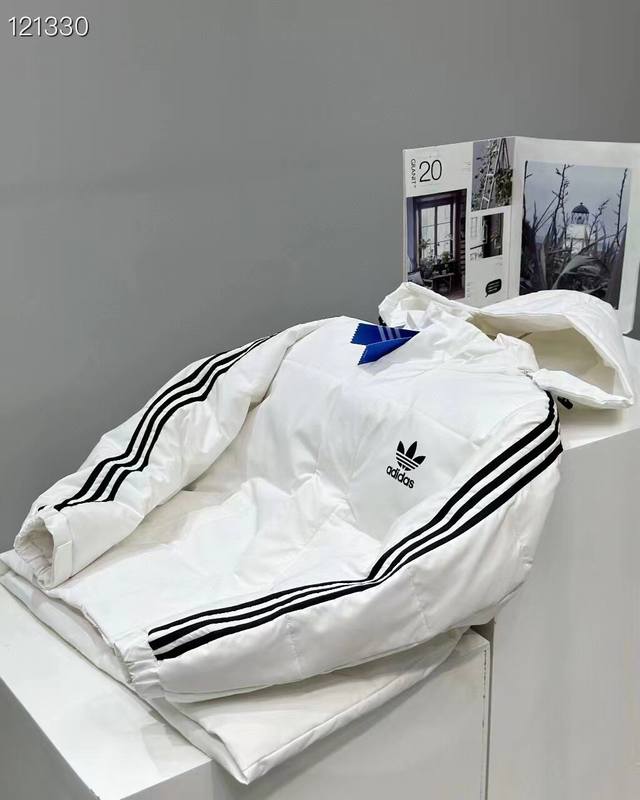 Lightweight down jacket, perfect for this season! Adidas Originals hooded down jacket, white duck down. This is definitely one of Adidas's best-selling jackets. 100% down. Completely customized 1:1 according to the original. Two colors, one size fits all, flattering for all body types. Fits up to 150 lbs, and even men can wear it. You'll need a down jacket all winter, and this one has a perfect fit and is very versatile. Classic color scheme, clean and not bulky, truly a must-have. Classic, versatile, simple, and energetic, a winter essential, and a perfect match for couples. Colors: White, Black. Size: One size fits all. Length 69cm, Chest 120cm, Shoulder/Sleeve Length 70cm.