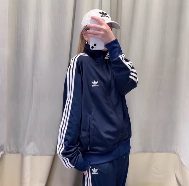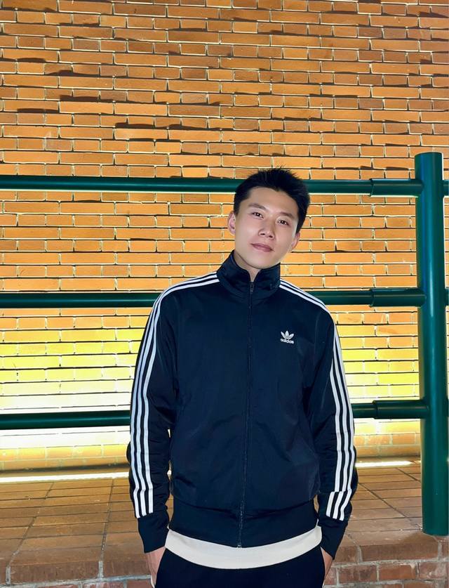 Adidas Trefoil Logo embroidery, classic three-bar webbing decoration, casual stand-up collar jacket