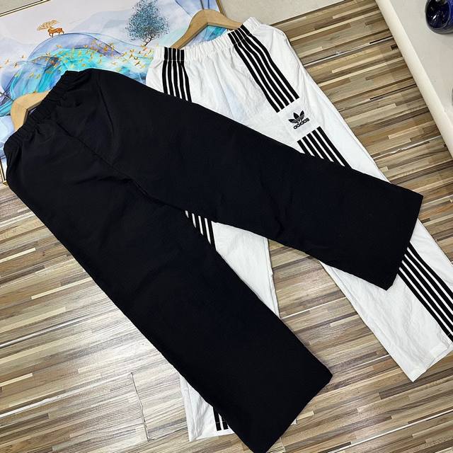 Adidas Trefoil three-bar casual straight-leg pants. Couple's style. Loose-fitting wide-leg pants, sweeping the hem.