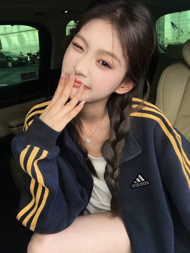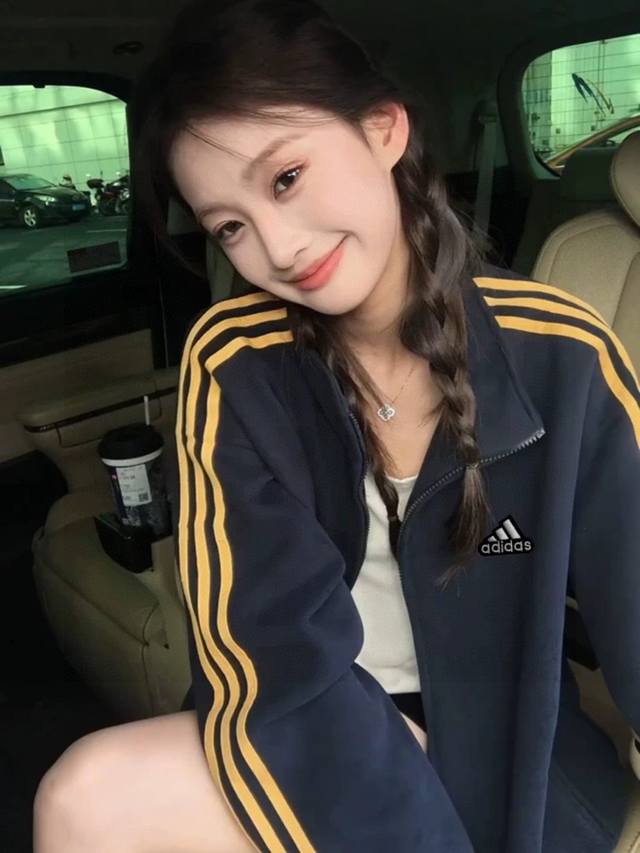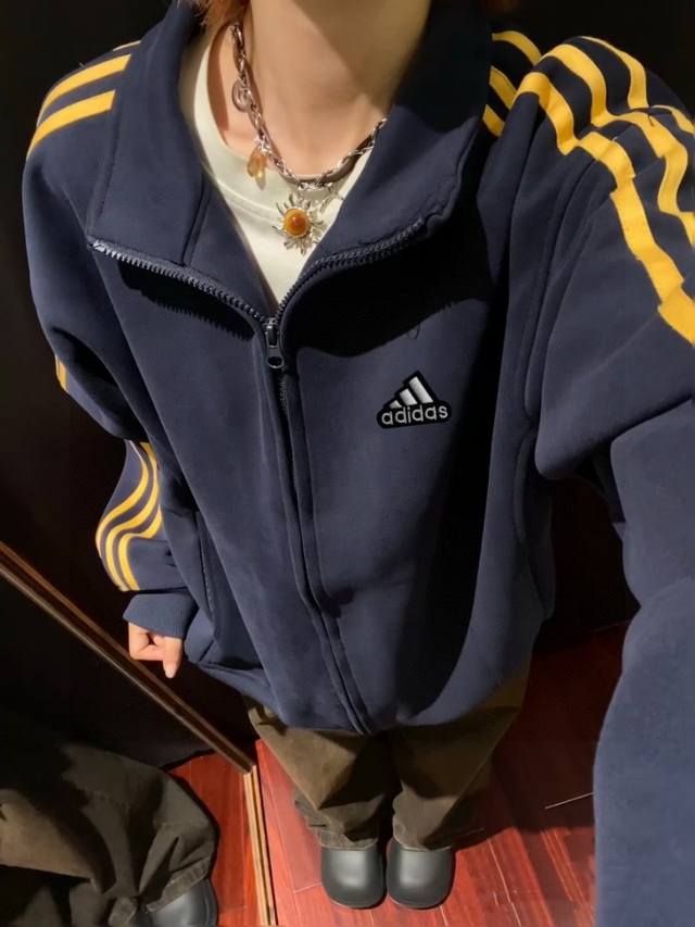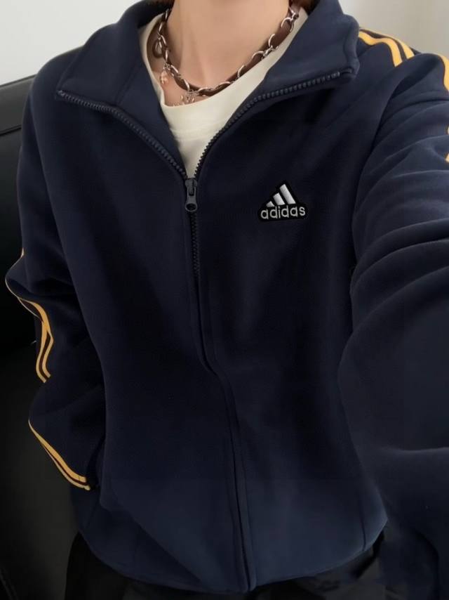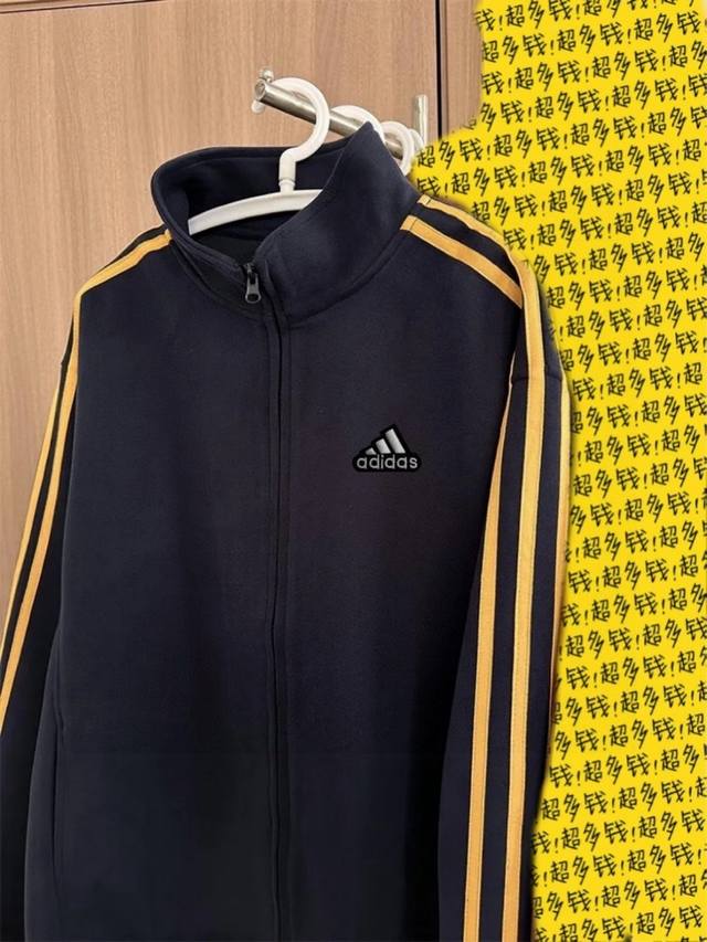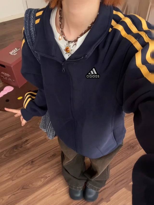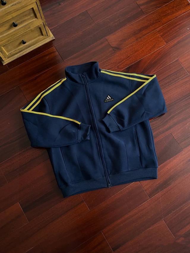 New Adidas American navy blue and yellow three-stripe cardigan sweatshirt for co