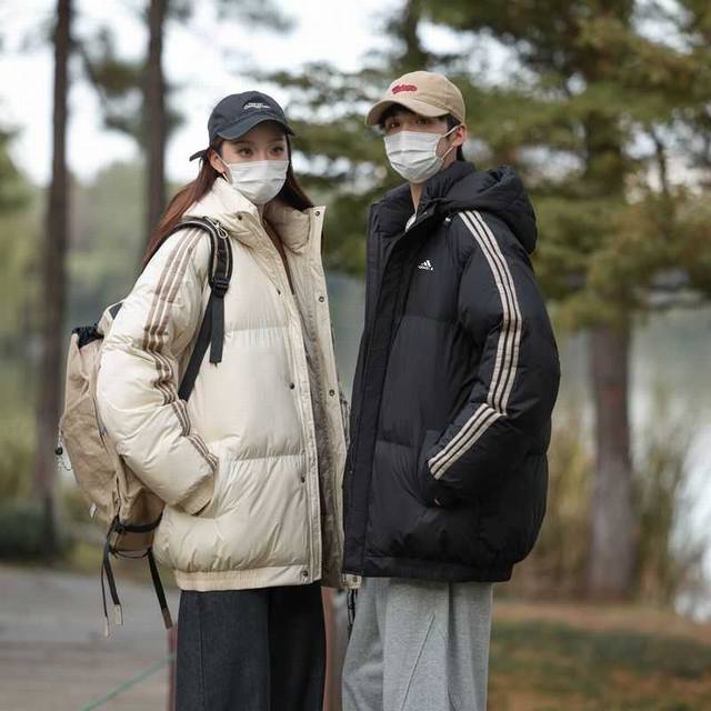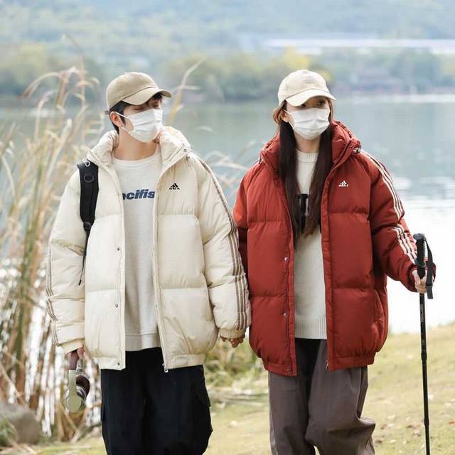 Classic Adidas Logo Design, Extra Thick, Warm and Cold-Resistant, Three Stripes Design, Full of Vitality. Unisex Couple Style Down Jacket. Made of functional memory waterproof fabric, pure and thick lining, hand-stuffed cotton, full of preppy style, versatile and loose fit. Universal size design, suitable for weights from 100 catties to 200 catties.