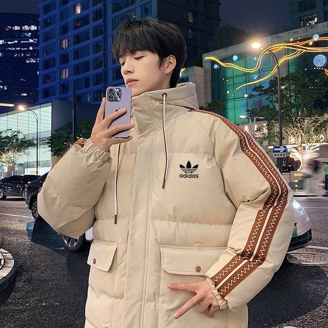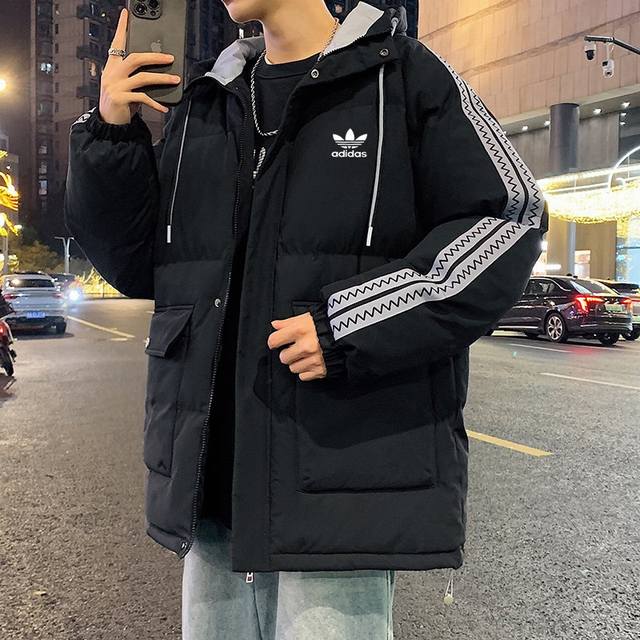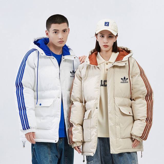 New Arrival! Adidas Originals Thickened Warm Hooded Cotton-padded Jacket for Couples. This time, the designer brings you a different kind of visual impact. First, look at the color-blocked sleeves