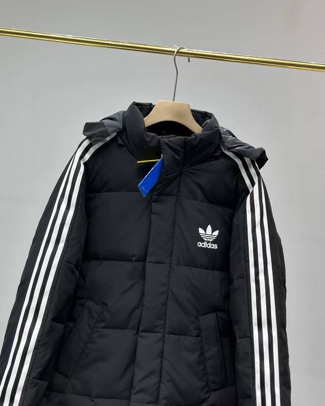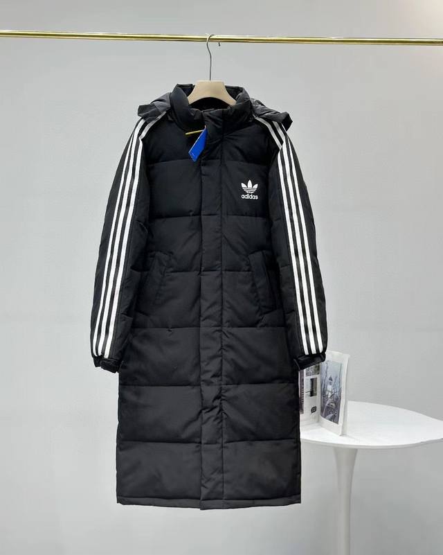 New Arrival! Adidas Originals Three Stripes Webbing Long Down Jacket for Couples - Extra Long, Over-the-Knee, Perfect for Winter - Loose Fit, Suitable for All Sizes - Custom-made Original 50D Fleece Memory Fabric, Extremely Soft and Comfortable - Super Absolutely 800g Down Filling, Enough for Winter as the Weather Gets Colder - Respects the Original, Not the Low-Quality Version on the Market - Sleeves with Custom-designed Positioning Drawstrings, Personalized Patchwork and Hollow-Out Design, Super Nice to Wear - Full Set of Custom-made Accessories, Original YKK Zipper (Details in Picture 9) - Factory Processing, Although It's a Cotton Jacket, the Quality and Details Are Absolutely No Less Than Originals - Long Design, Suitable for Men, Women, Young and Old, Tall and Short, Fat and Slim - Highly Popular on Xiaohongshu and Kuaishou - Colors: Black, White - Sizes: M-XL - See Picture 9 for Size Details