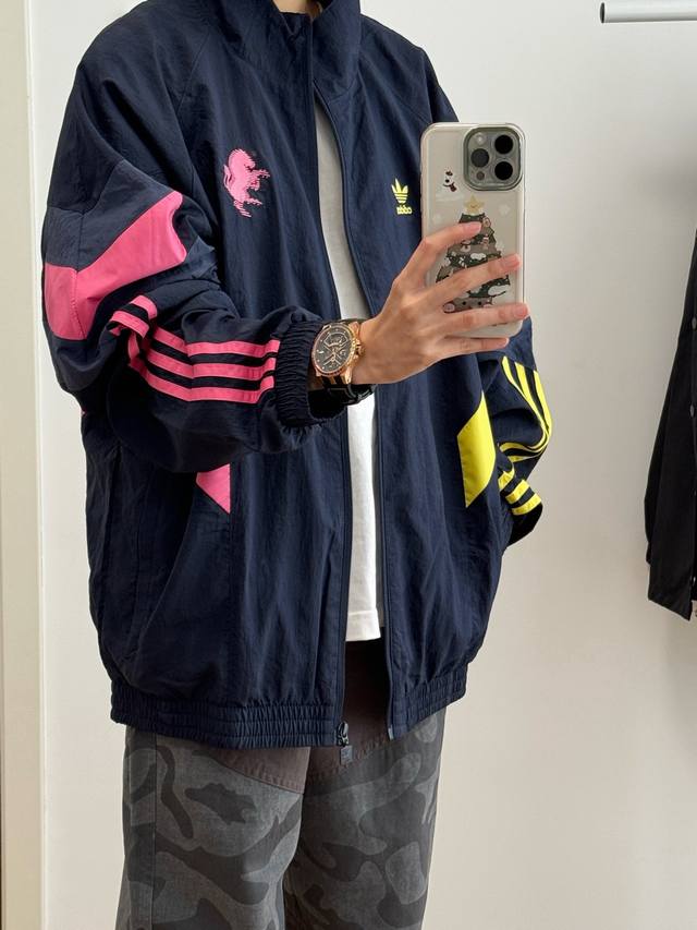 Adidas Trefoil Zipper Stand Collar Loose Casual Vintage Washed Jacket