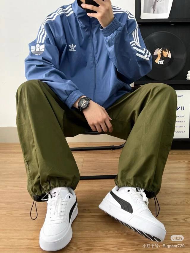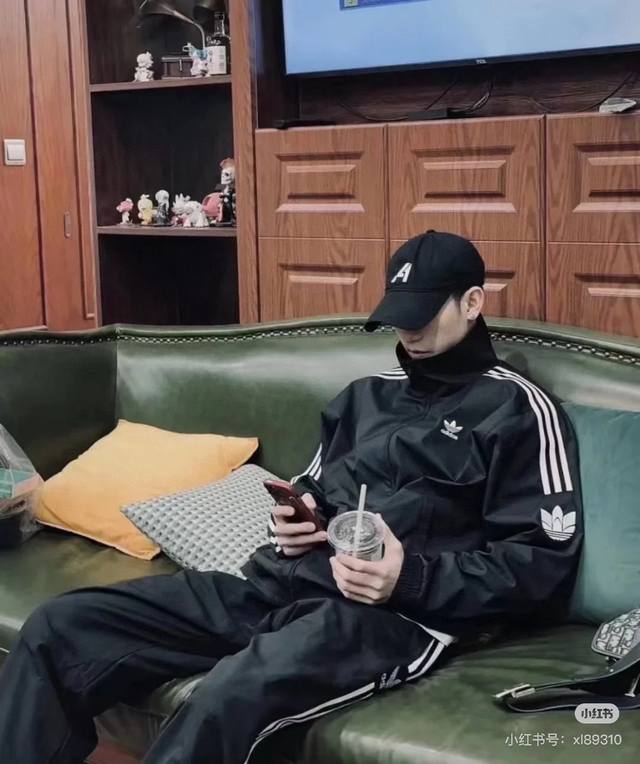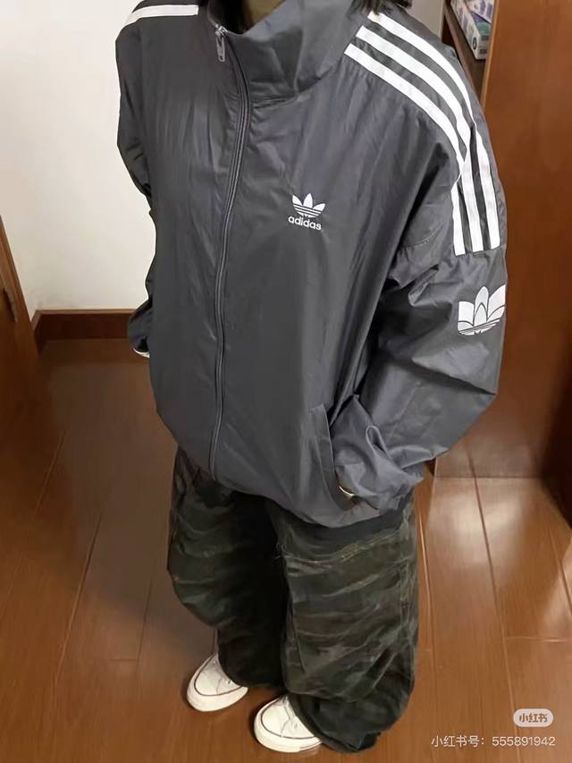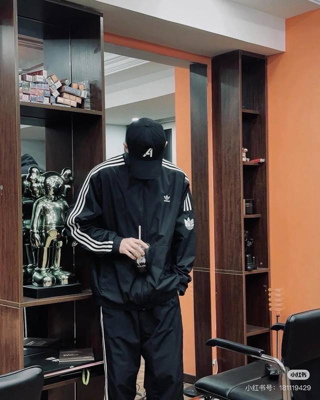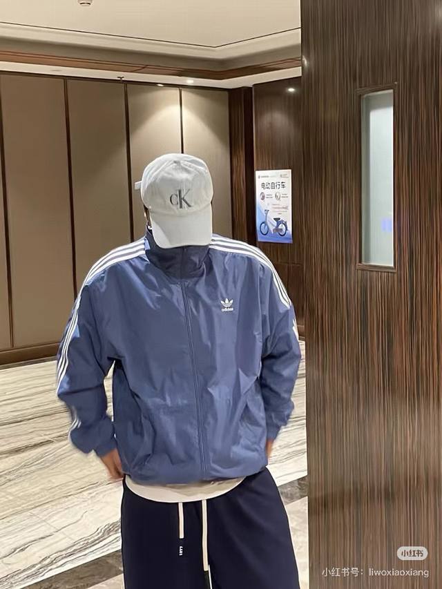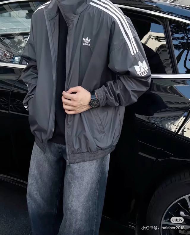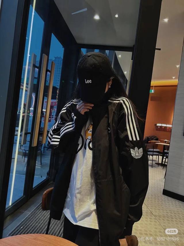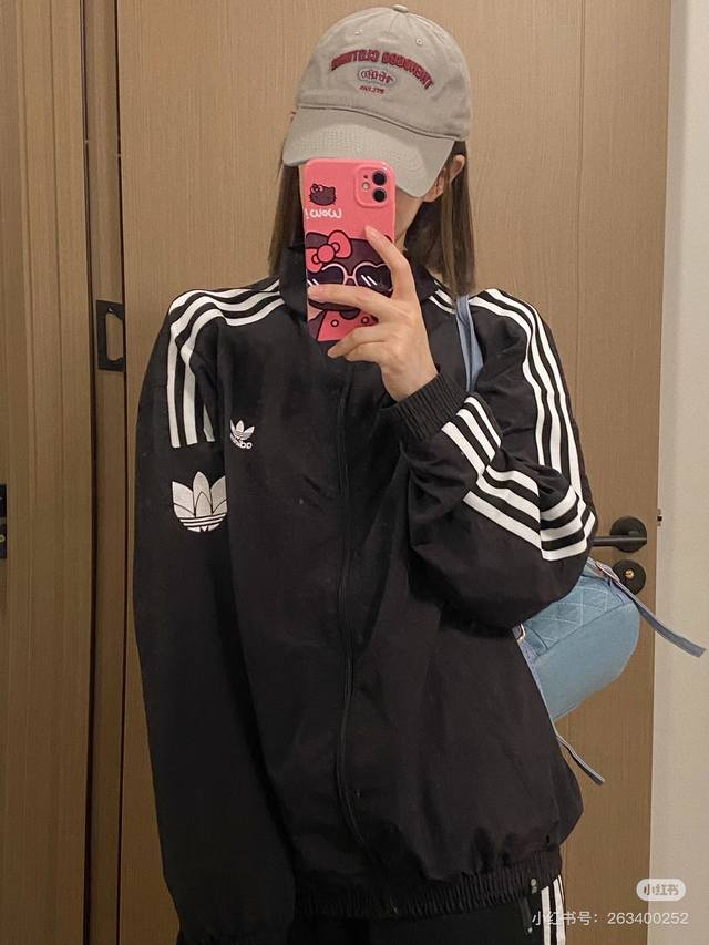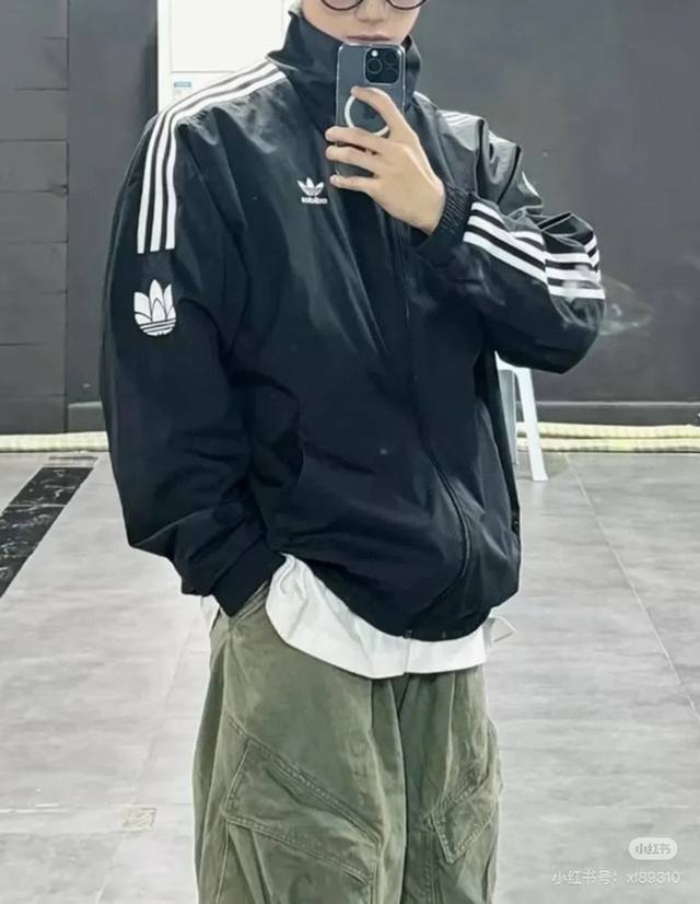 , the original version! Seen by Edison Chen, Yang Mi, and Wang Yibo! American retro! Black is back! American retro! Adidas' premium Trefoil collection! Adidas Originals striped logo with a loose mesh lining! Black men's fall stand-up collar sports jacket with a free Asian version (7534).