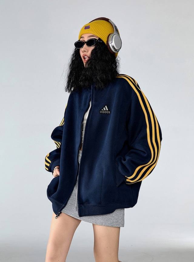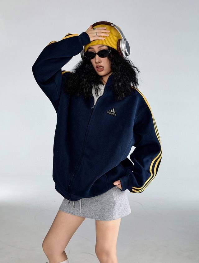 Original Quality New Adidas American Style Navy Blue and Yellow Three Stripes Cardigan Sweatshirt Couple Wear American Trendy Retro Casual Stand Collar Zipper Jacket Autumn DDD Features embroidered logo with high-quality yellow webbing DDD Made of high-density brushed ultra-soft fabric, no pilling, no snagging, no shrinkage, quality guaranteed DDD This style took half a year to prepare and underwent repeated pattern making. Many styles on the market don't look as good on models! After repeated modifications and influencer testing, this unisex couple style was finally finalized. It suits all body types and ages DDD The zipper features a hidden edge design, giving it a very high-quality feel DDD This product cost me a lot of money and time, I hope everyone can support it! DDD Colors Navy Blue Black DDD Sizes M L XL DDD Chest 130 134 138 DDD Shoulder Width 65 67 69 DDD Length 72 74 76 DDD Sleeve Length 56.5 57.5 58.5 DDD