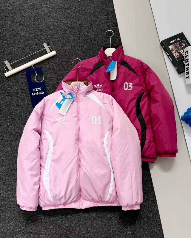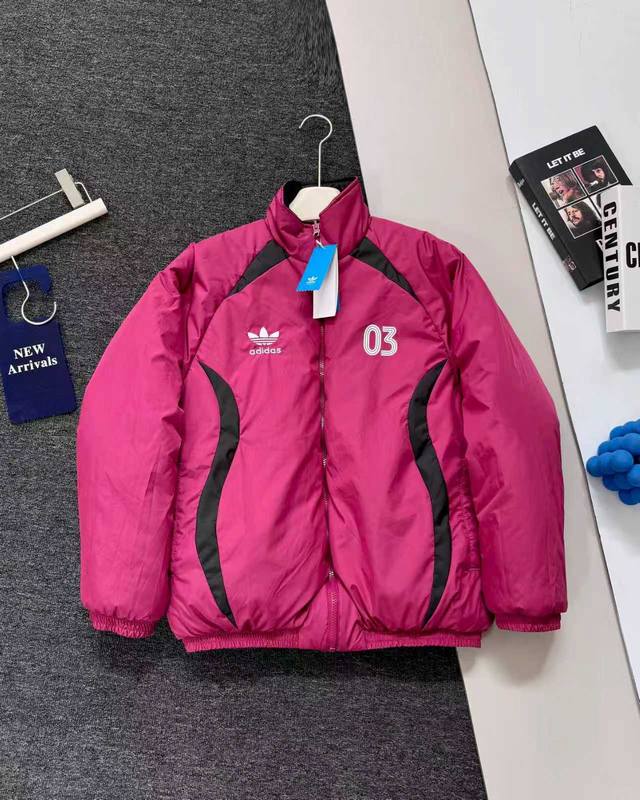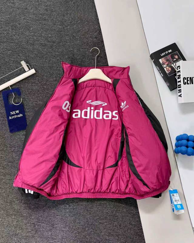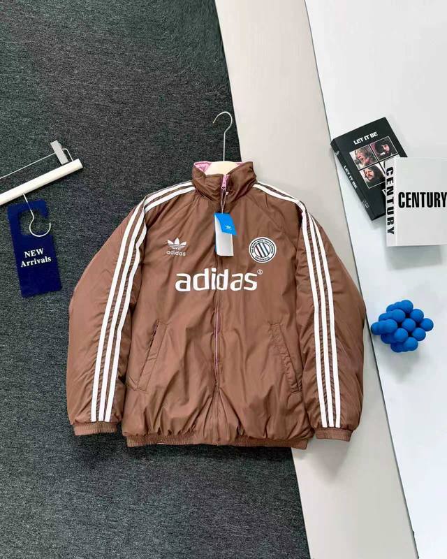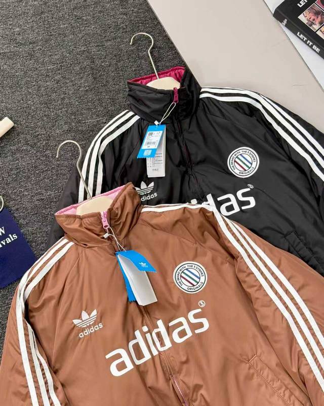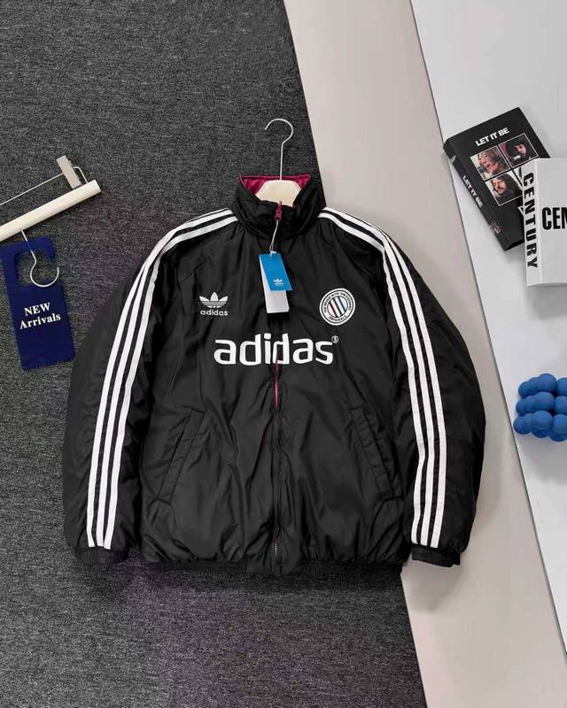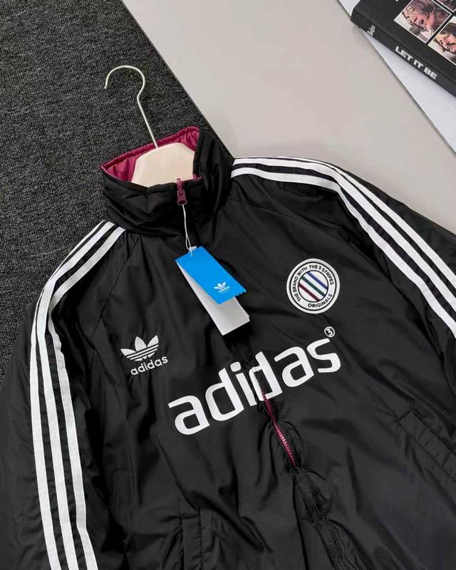 Adidas Originals Adcrev Pad Tt Retro Warm Reversible Striped Logo Loose Long-Sleeved Cotton Jacket Adidas Reversible Jersey Cotton Jacket
