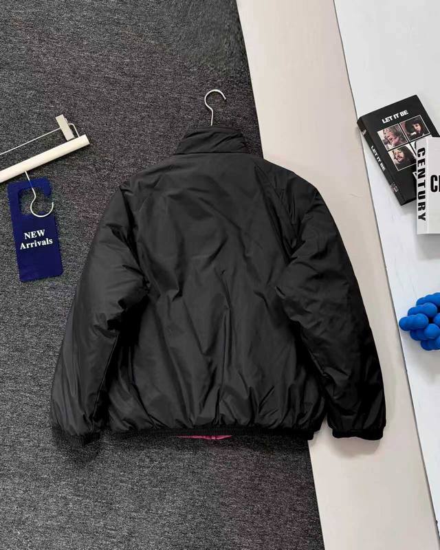 Its unique reversible design is truly exceptional. One side is a simple solid color, showcasing understated elegance; the other side features eye-catching stripes and the classic logo, instantly boosting its appeal. Maximum loft, warmth comparable to down jackets, switch between two styles to meet your needs for different occasions and moods