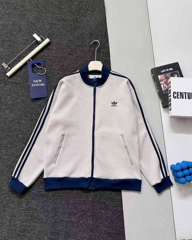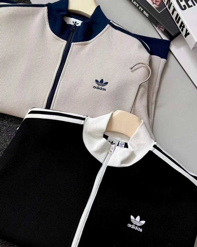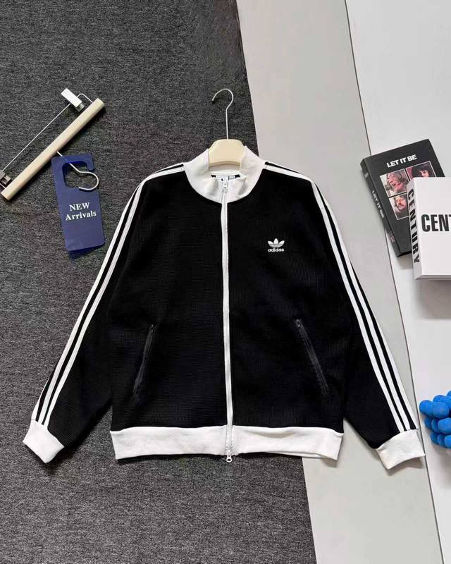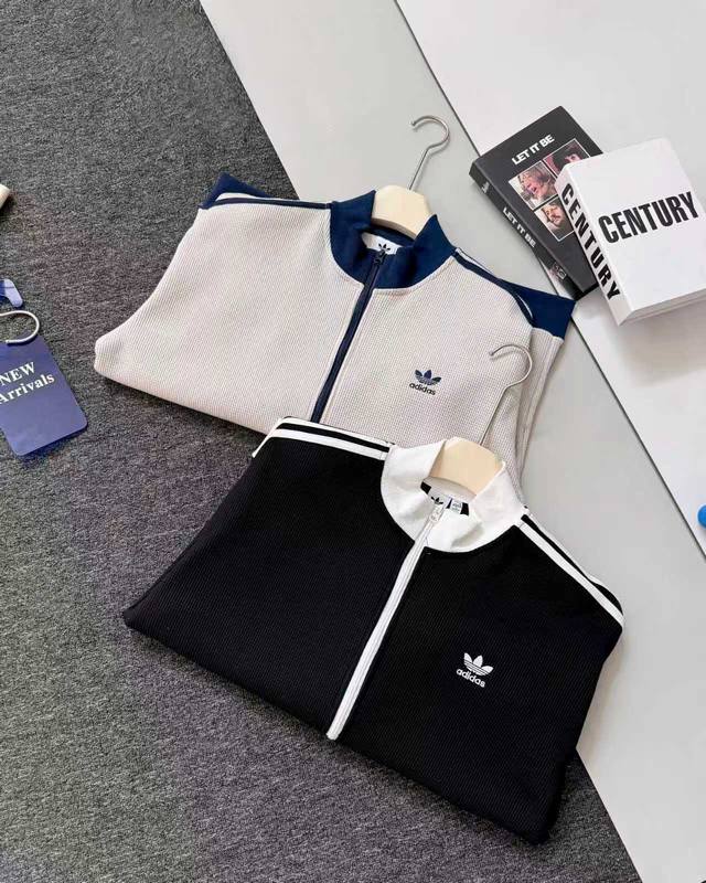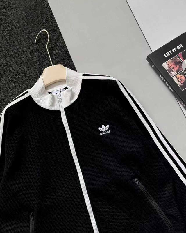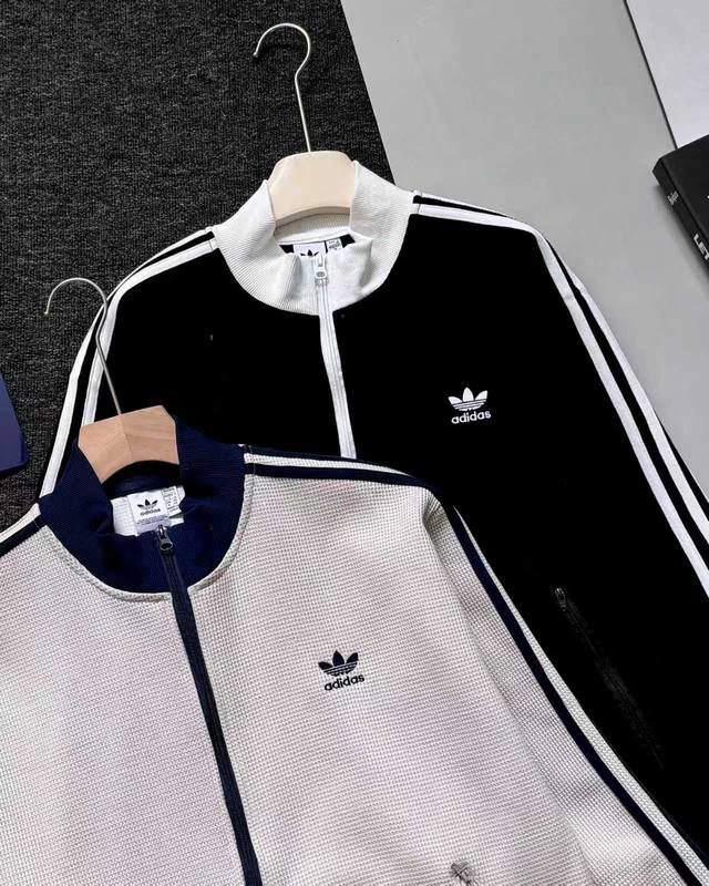 This is Adidas's hottest autumn style this year, worn by many internet celebrities and stars. Classic logo embroidered three stripes webbing color-blocked ribbed patchwork retro casual waffle collar stand collar cardigan jacket