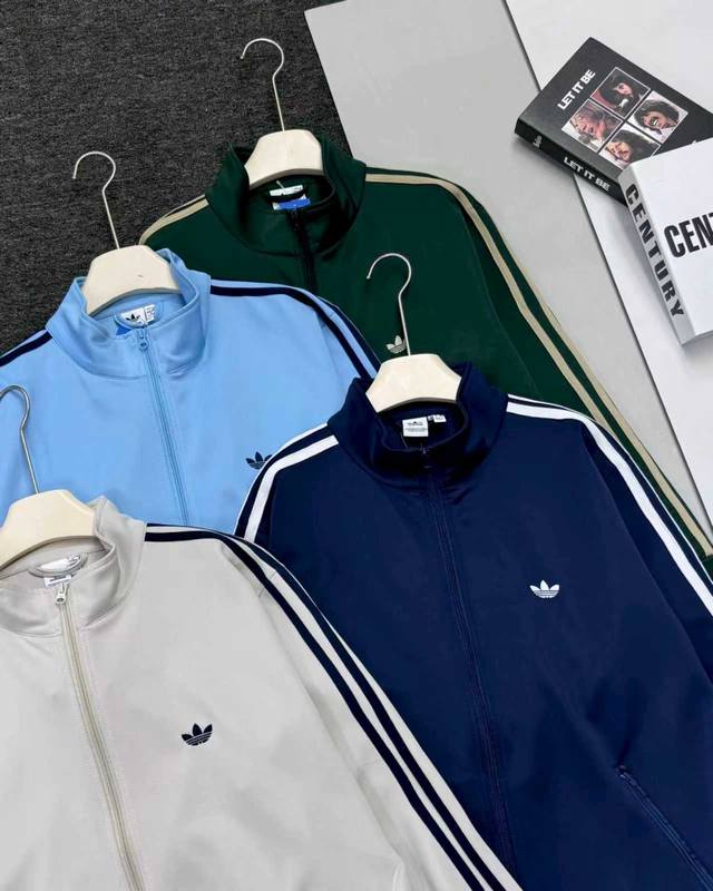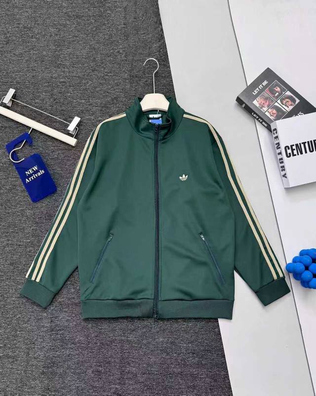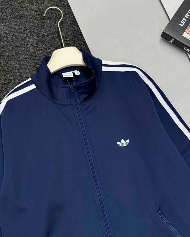 Adidas Originals Trefoil stripe logo print stand collar retro zip-up long sleeve jacket unisex