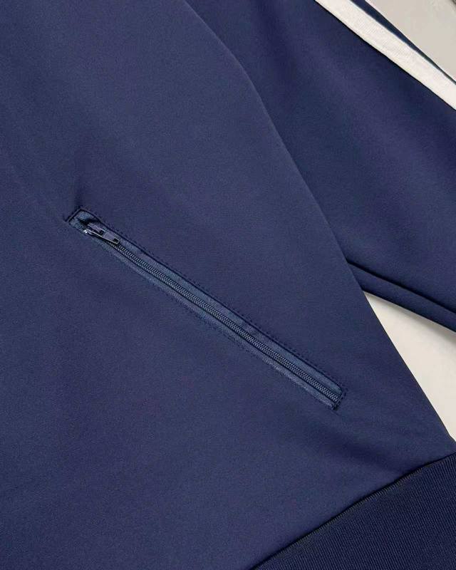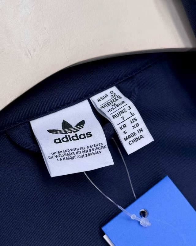 Real shot details Adidas Originals Trefoil stripe logo print stand collar retro