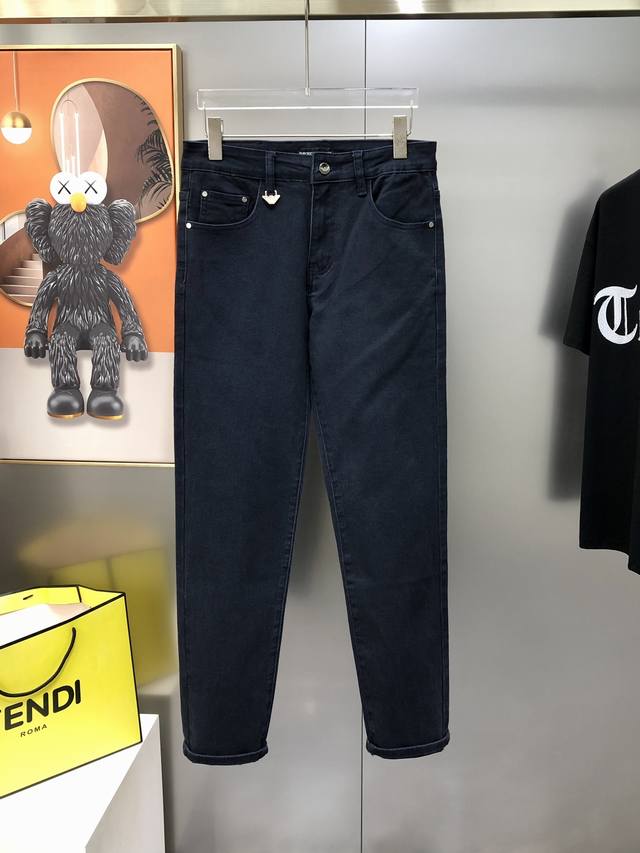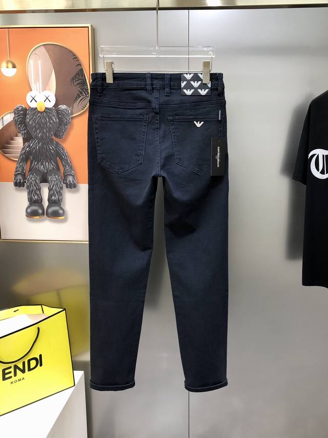 A*Mani Armani 2025 early autumn new men's slim-fit skinny jeans, synchronized with the official website, simple and fashionable hot-selling high-end customized original goods, eagle logo design on the back pocket, customized imported denim washed denim pure cotton fabric, original accessories, fine workmanship, cool and energetic, soft and delicate, comfortable and breathable commuter style, extremely easy to match, extremely durable, counter quality, super handsome and stylish, size: 29-40, with stretch, 35, no 37, 39, shipped the next day, navy blue