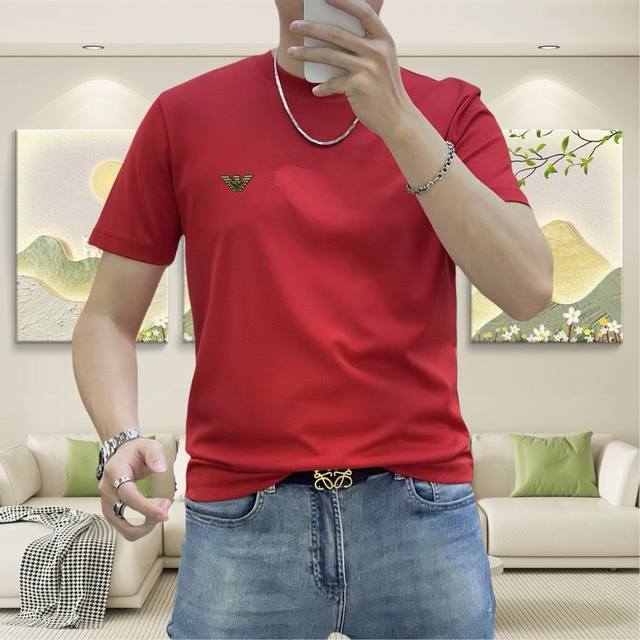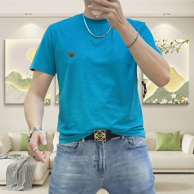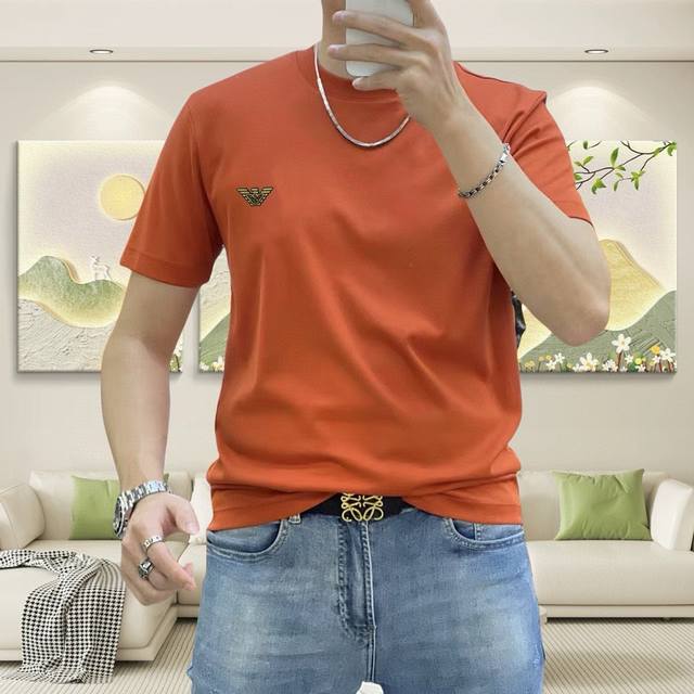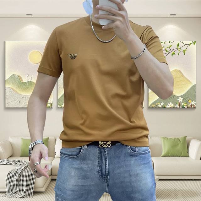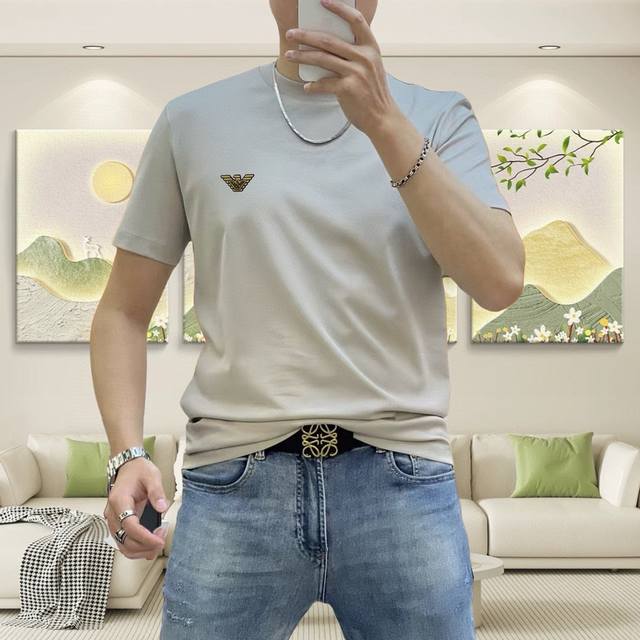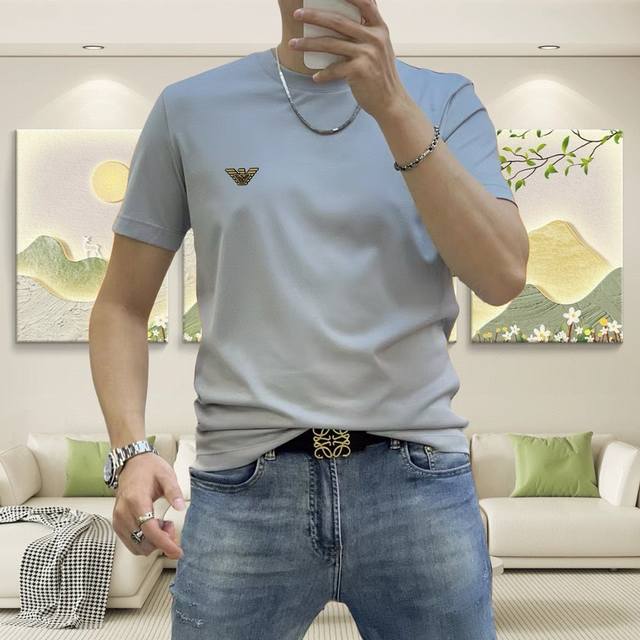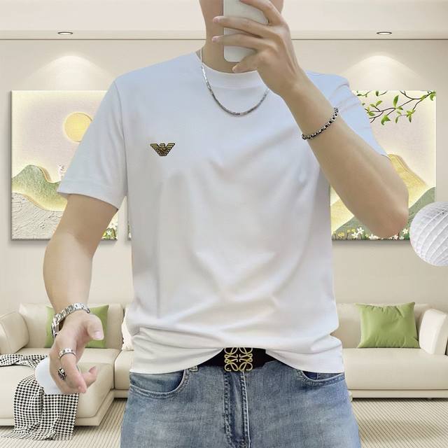A*Mani Armani 2025 Spring/Summer new original men's round neck short-sleeved T-shirt, high-end customization, fashionable and versatile, sold simultaneously at the counter, printed with rubber flying eagle logo pattern design, customized for customers, imported Tencel liquid ammonia cotton fabric, comfortable to wear, soft and breathable, and feels very delicate. The interior is all made of single-needle lockstitch technology! It can ensure that it will not deform when worn! The tailoring is appropriate, without any sense of restraint, and the OEM p workmanship is fine, showing temperament and class. The upper body is very handsome. Size: M-4Xl, the largest size can wear around 195 pounds. Please state your height and weight