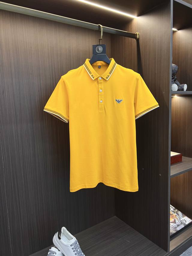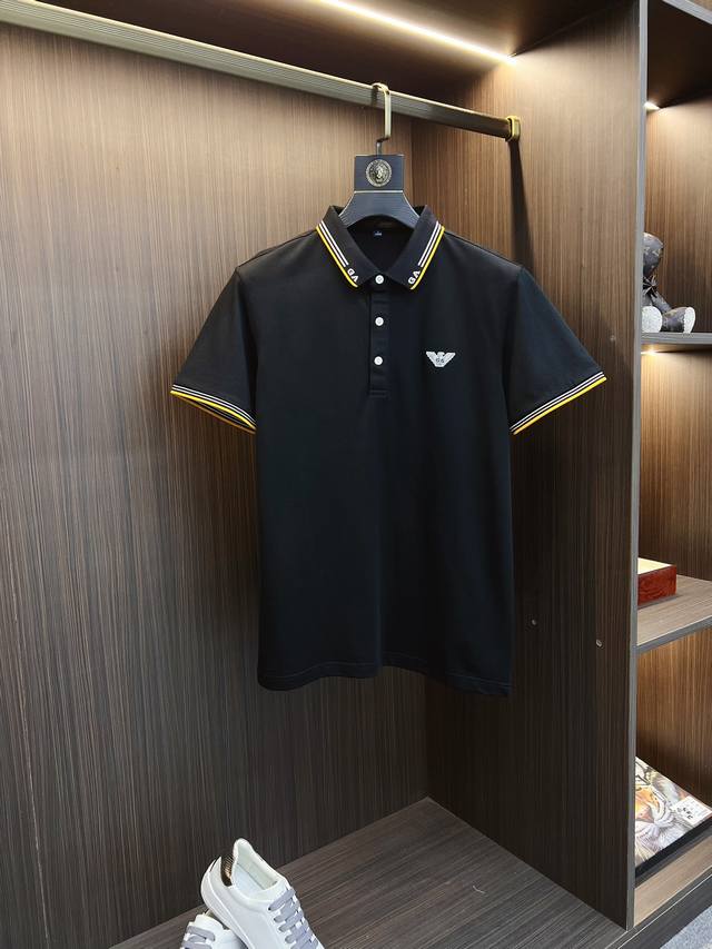 Armani High-End Customization, 2025 Spring/Summer New Fashionable Collared Short-Sleeve Polo Shirt, Original Replica, Customer-Supplied Original Imported Mercerized Cotton Fabric, Original Replica of Classic Brand Logo, Perfect Cut, Exquisite Workmanship, Must-Have Item! Sizes: M-3XL DDD