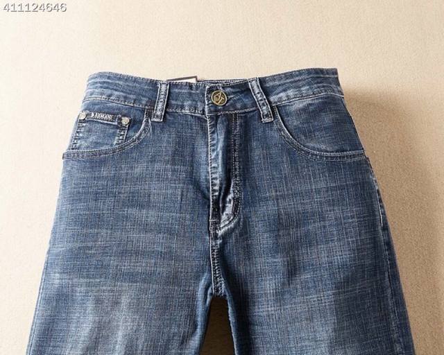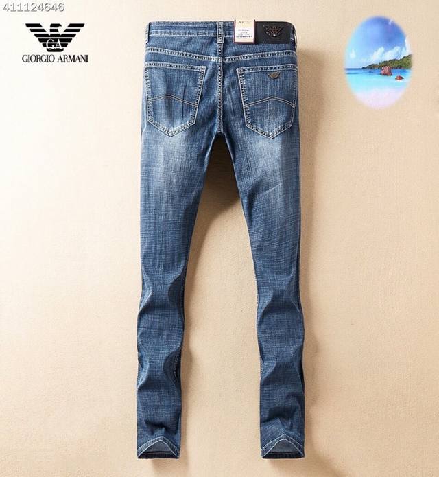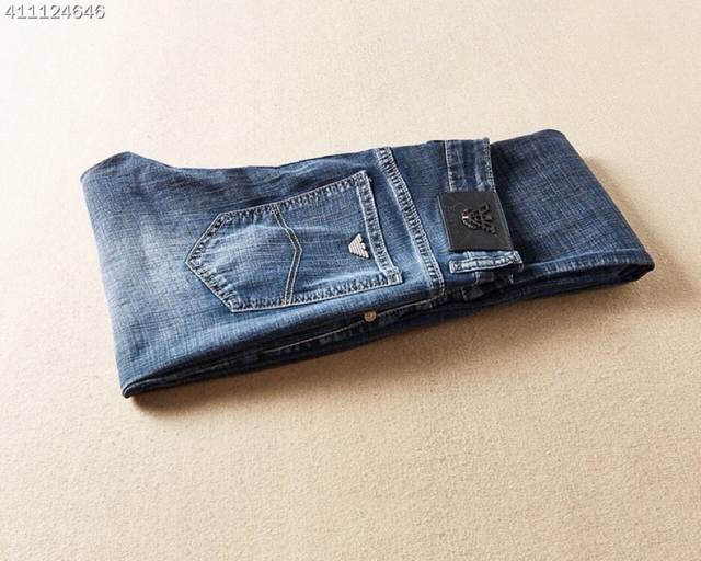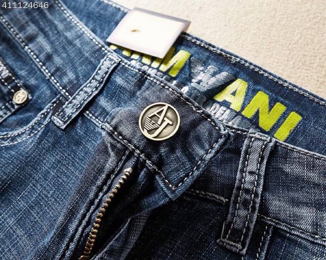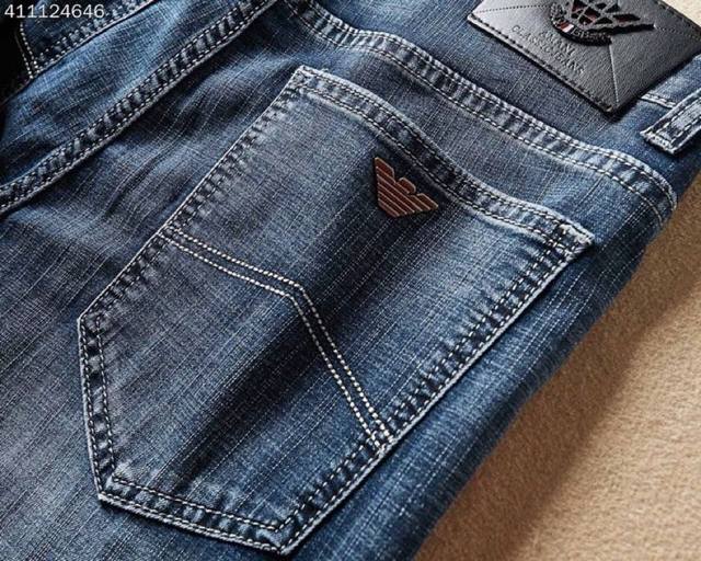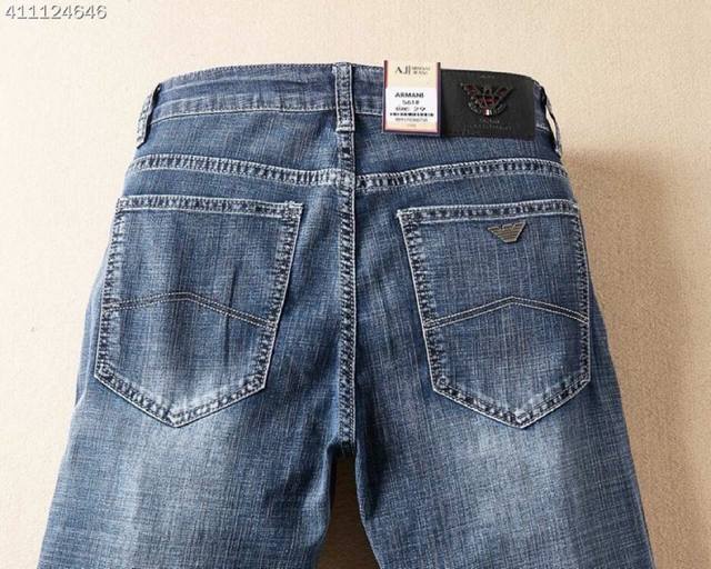 Armani men's new Korean-style denim pants, made from imported fabric that's stretchy, comfortable, and slimming! The refined and elegant cut perfectly shapes your legs! The premium hardware and leather details elevate the look! The classic denim color is versatile and timeless! Sizes: 29-38