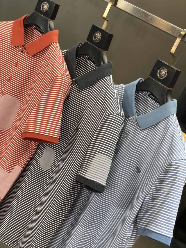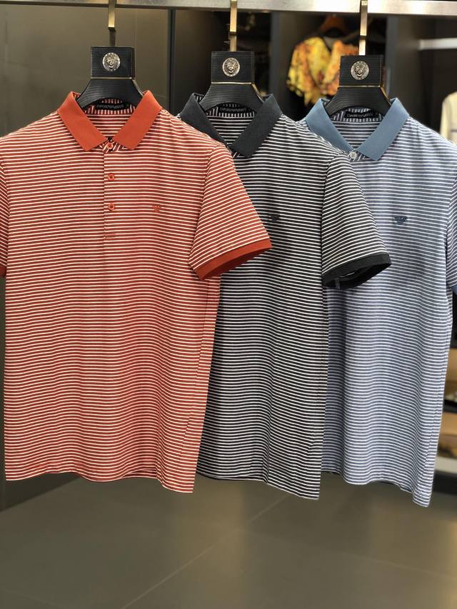 Armani. Spring/Summer SS collection. Casual polo shirts available at the official website and counter. Custom-made beaded mercerized fabric for a comfortable and breathable feel. Ribbed neckline. Sizes: M-Xxxl. M wears