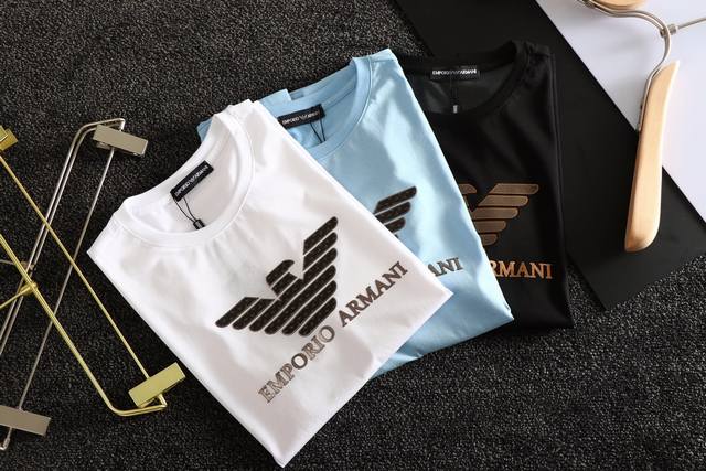 Armani Ss latest spring and summer catwalk style, available on the official website and counters simultaneously, original single product, original 1:1 custom made, imported 120 European cotton fabric, using top-level printing technology, brand elements, patterns and letters printed on the rubber, showing the personality of young people, comfortable and breathable, unisex style, handsome upper body, three complete labels, three colors recommended, purchasing level, size: M-3Xl