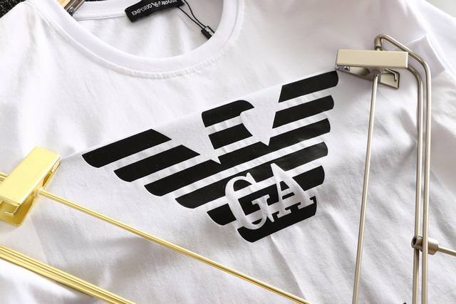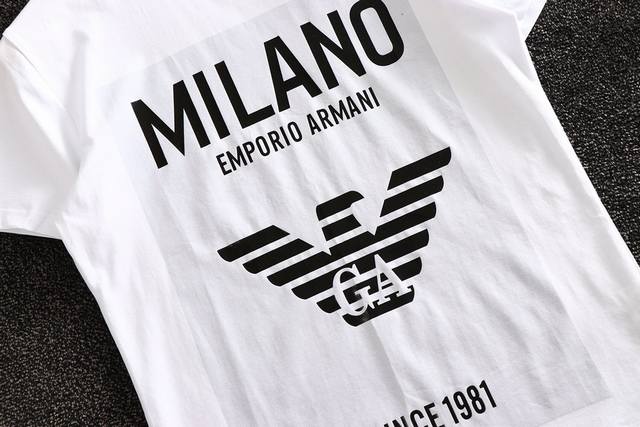 Armani summer official website new short-sleeved shirt, counter version, hot glue brand letter logo pattern design on the chest, made of selected high-quality European cotton fabric, original replica, fashionable Hong Kong style, comfortable and breathable upper body! Size: M-3Xl
