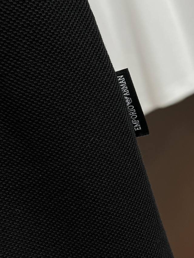 Armani's classic polo collar design for summer 2025, paired with a simple single-breasted buttoning, has neat and smooth lines, cleverly modifies the neck line, and highlights the elegant gentleman style. The exquisite brand logo on the left chest uses a seamless taping process, which is delicate and smooth, exuding a luxurious texture in a low-key manner, and showing the brand's craftsmanship and pursuit of quality in the details.