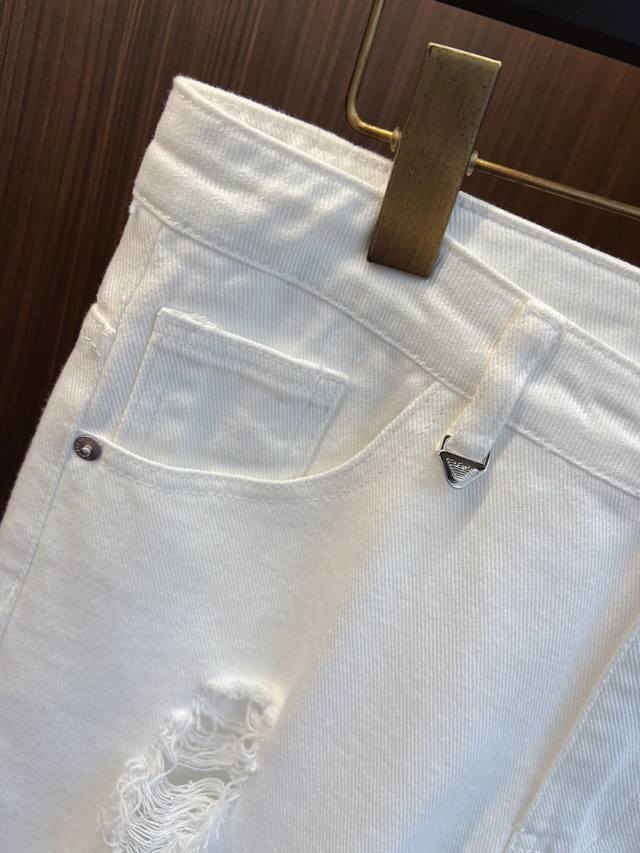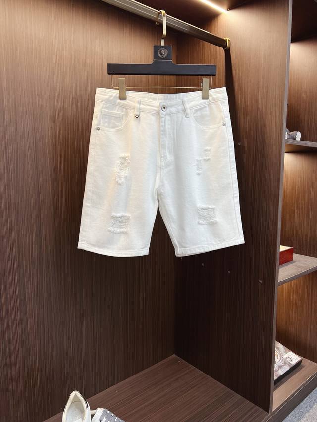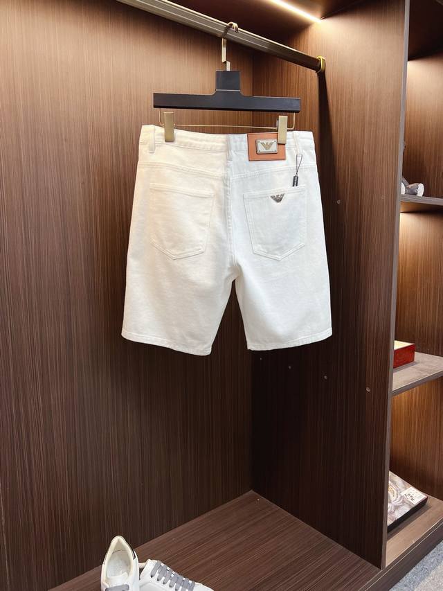 Available at Armani official website and boutiques, this is a top-quality original item. A super stylish pair of 5-inch denim shorts, custom-made with original washed denim fabric, featuring a unique design, top-quality printed logo, and original hardware. An exceptionally high-end pair of jeans, crafted with luxurious materials and exquisite workmanship. Looks great and stylish on. Highly recommended. Sizes: 29, 38.