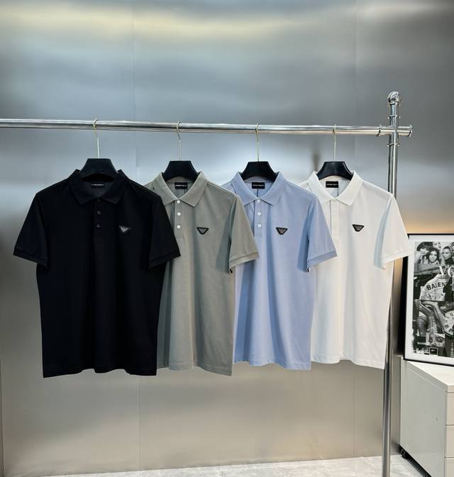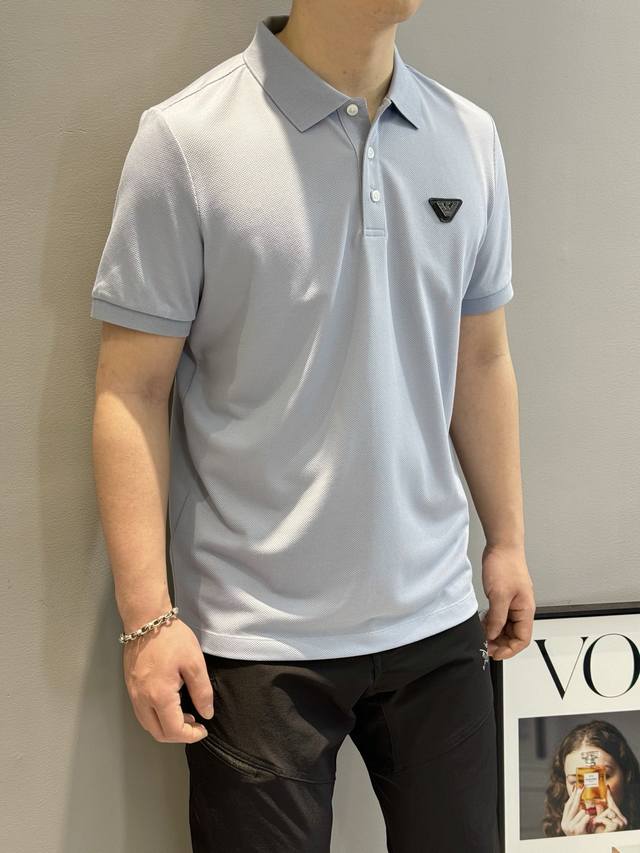 Invincible push. . Armani 25S Spring and Summer Men's Polo.. Evergreen style! Custom-made mercerized pearl cotton fabric, custom-made and dyed chest flying eagle label. Custom-made leather label. Custom-made inner collar. Simple and mature color matching, great room for mixing and matching! ! ! ! Color: black. blue. gray. white. Size: M-3Xl S can be customized. 175 140 catties recommended L