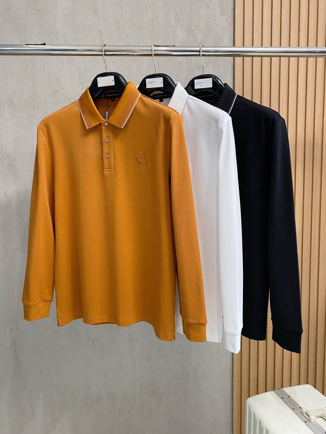 New arrival for the spring, exclusively from Armani, a new original men's polo long-sleeved high-end custom version, fashionable and versatile, a hit item. Made of imported pure cotton fabric, with a logo design on the chest. Super soft and delicate to the touch, skin-friendly and comfortable to wear. High-end boutique OEM factory, fine workmanship, very good on the upper body. A must-have item for men, with three complete labels. Sizes M-4Xl, multiple colors