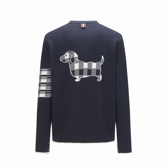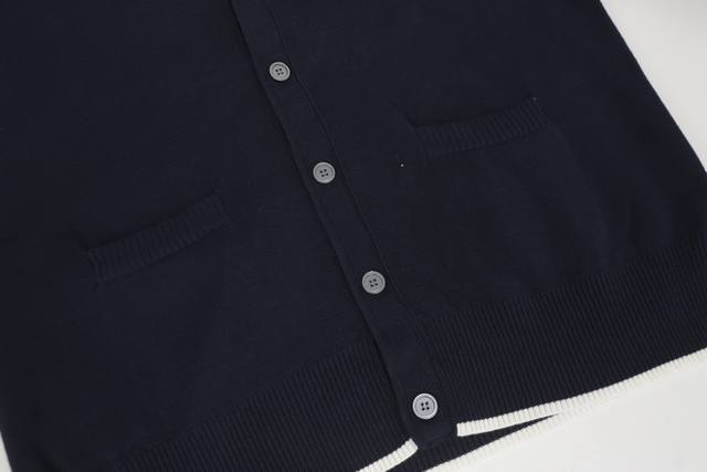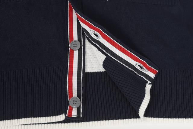 Thom Browne Back Jacquard 4-Stripe V-Neck Knit Cardigan Sweater Unisex Blue Size