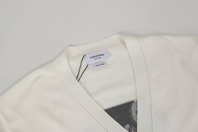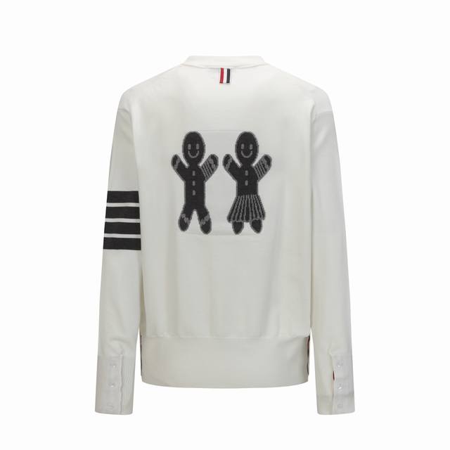 Thom Browne Ss25 Striped Logo V-Neck Single-Breasted Gingerbread Man Long Sleeve Sweater for Women White