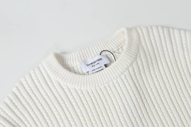Thom Browne Striped Crew Neck Long Sleeve Sweater for Unisex Off-White