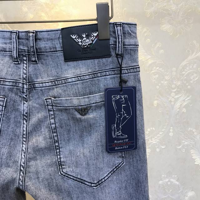 A*J Armani 2680Ss Spring/Summer Original New Men's Long Jeans, Fashionable Korean Style Slim Fit Jeans - Slightly Elastic Pure Cotton Fabric, Breathable and Soft! This summer's hottest eye-catching item! Novel, fashionable and unique design! Retail sizes: 28-38 (excluding 35 and 37). Please provide your waist measurement when ordering.