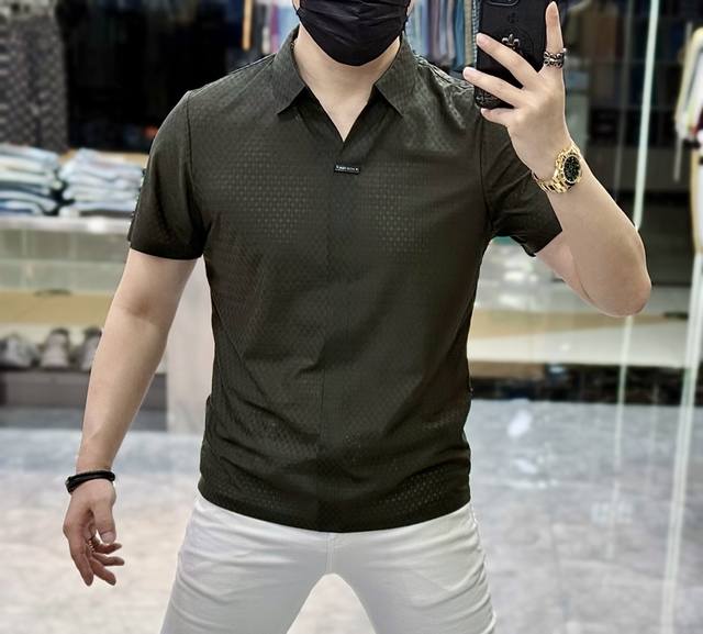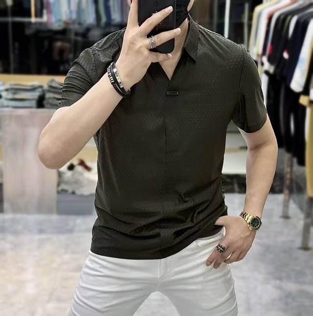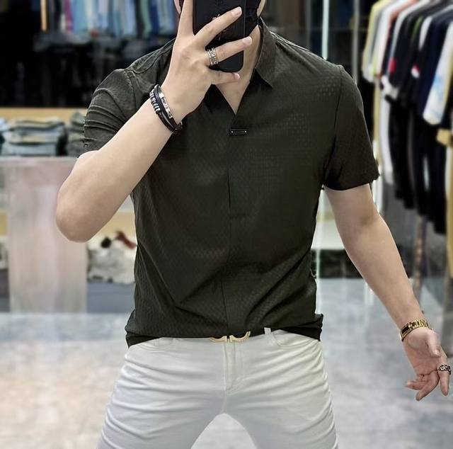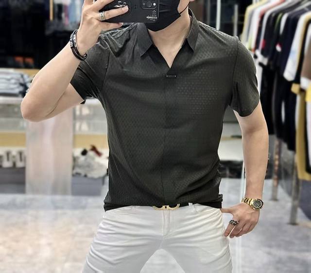 Armani 2025 Spring/Summer New Arrival, Chinese Style Collar Short-Sleeve Collection. Made from premium double mercerized cotton fabric, featuring a stylish designer logo design. The fit is superb, the fabric is delicate, comfortable, and breathable. It looks great with any outfit