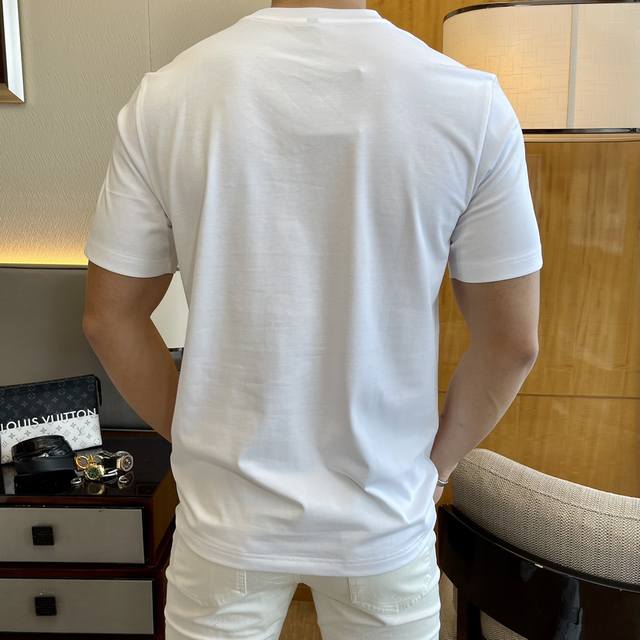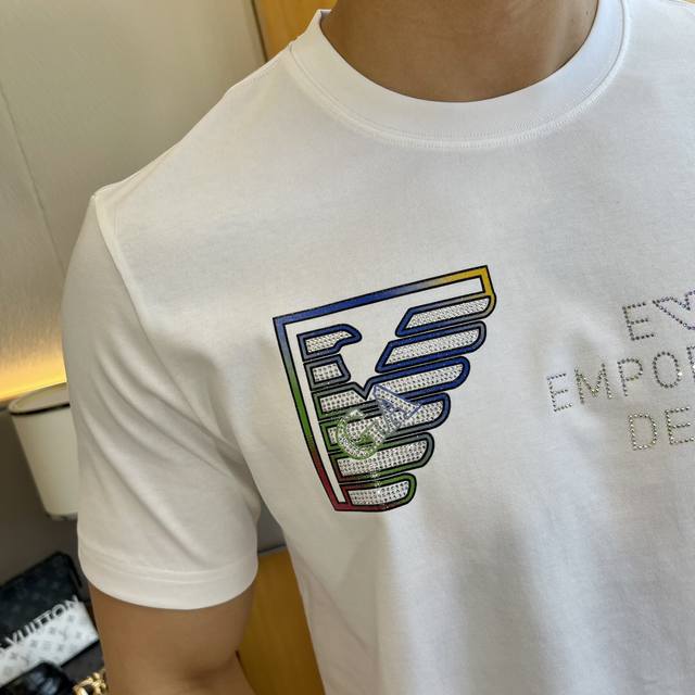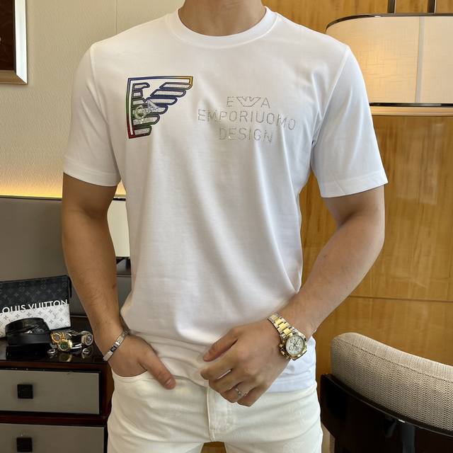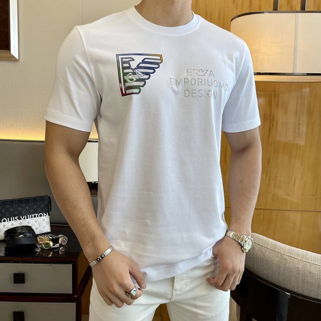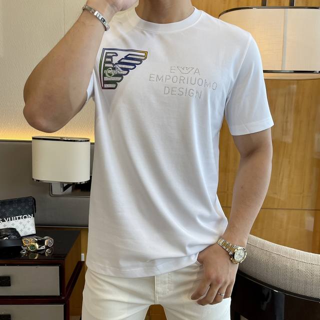 Armani 2025 Spring/Summer New Year's Collection Short-Sleeve T-Shirt, Official Website Synchronized, High-Quality Custom Made with Top-Grade Mercerized Cotton Fabric, 1:1 Production from a Top Factory, Fashionable Brand with Heavy Craftsmanship and Logo Design, Soft and Delicate to the Touch, Skin-Friendly and Comfortable, Versatile and Casual, Excellent for a Stylish Look, A Must-Have for Handsome and Trendy Men. Sizes: M-3XL. Model 175cm, 145kg, wears size L.