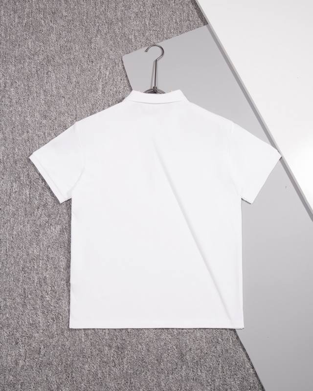 Armani short-sleeved polo shirt. Original fabric, same style as the official design. Custom-dyed fabric with a very comfortable feel. New spring/summer style, fashionable and unique, super versatile and good-looking. Suitable for both men and women, a must-have. Complete with hangtag, neck label, washing label, and three tags. Colors: White, Black, Green. Sizes: M-3XL.